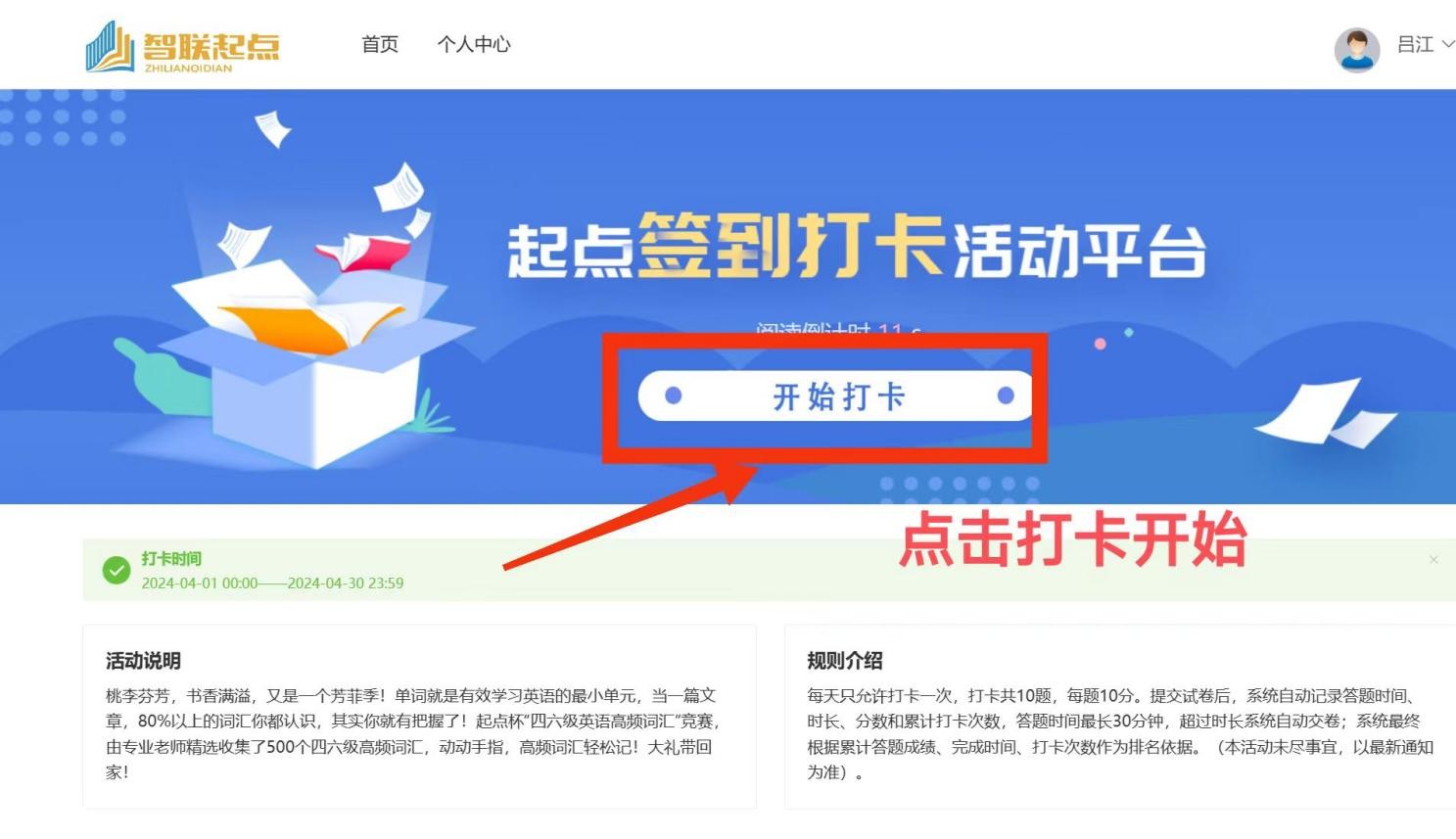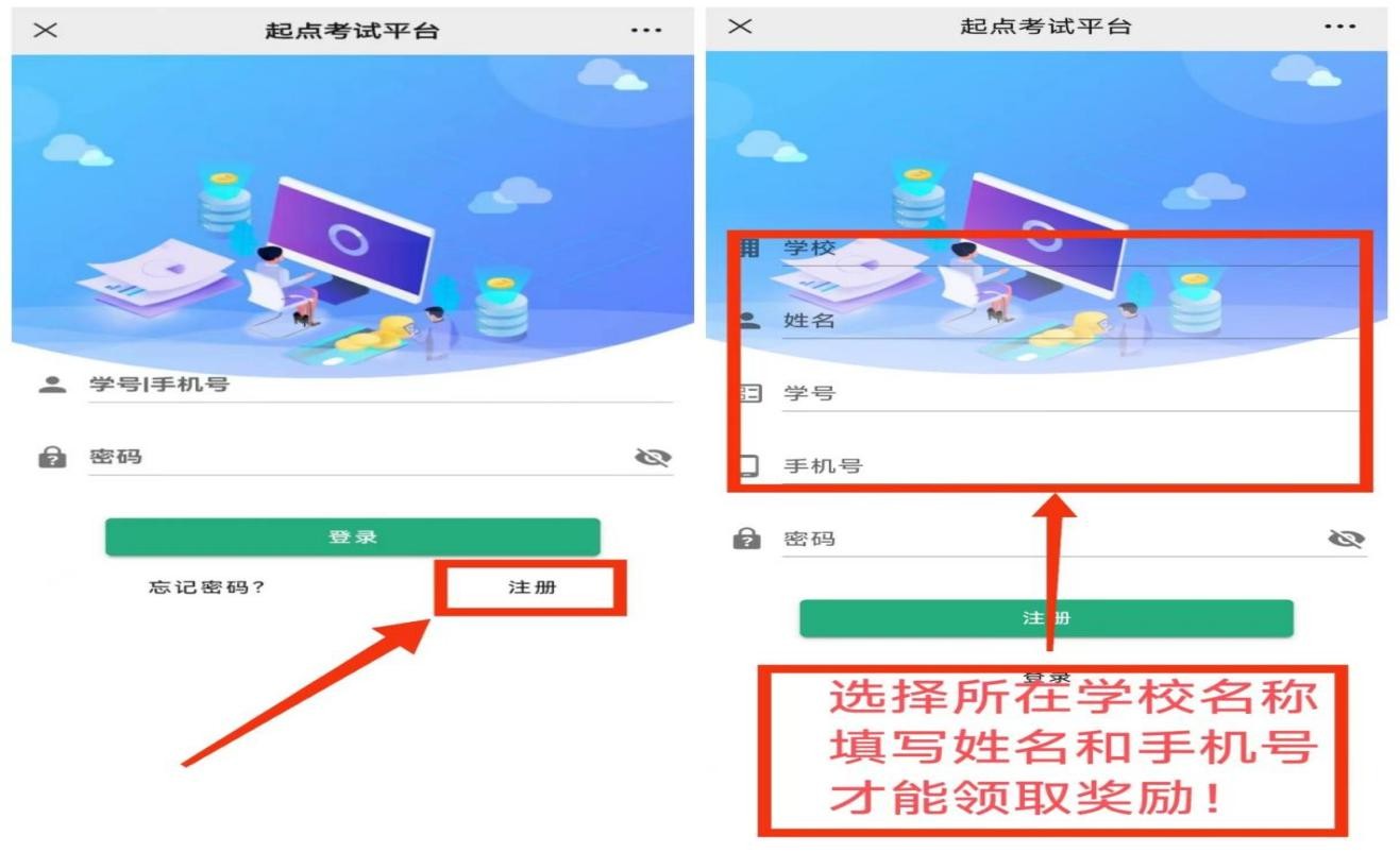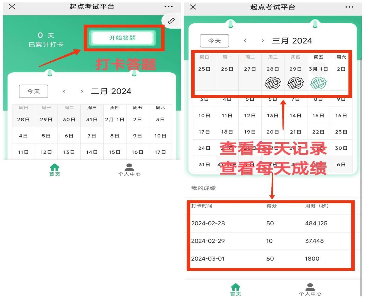 同学们进入平台后需先注册,填写本人所在学校、院系、学号、个人姓名、联系方式,以便成绩统计,通知领取奖品。(已经注册过“起点考试网”账号或参加过往届竞赛活动的同学们,无需注册,直接账号登录即可。)完成注册后进入打卡页面,点击“开始答题”作答交卷即可,记得坚持每天打卡哦!