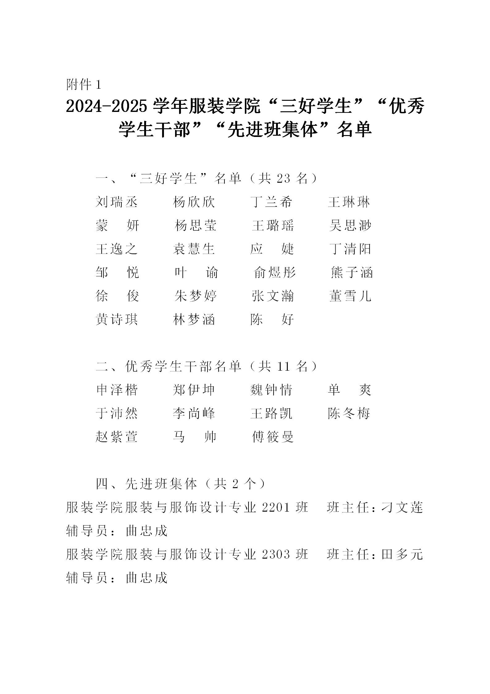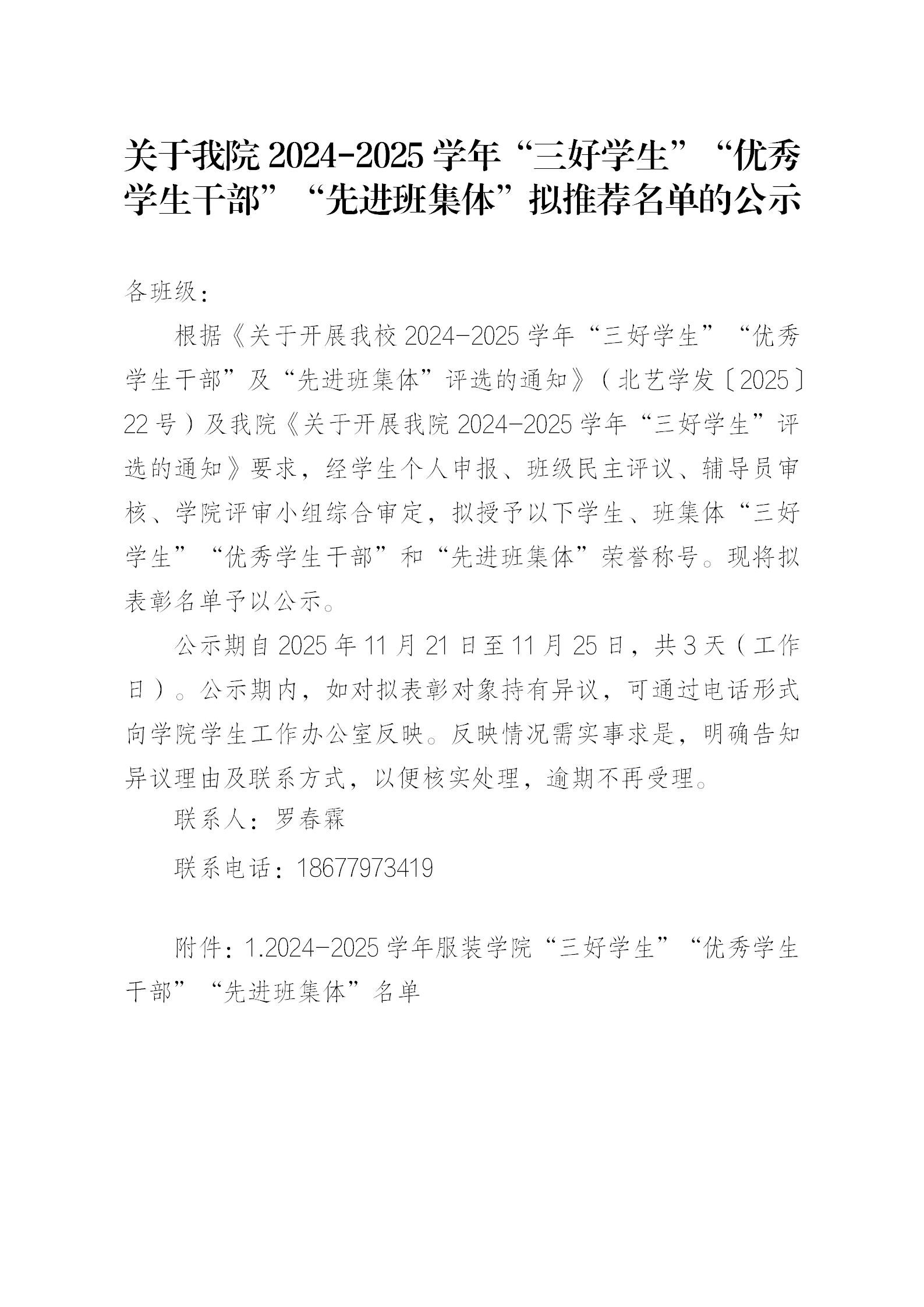 关于我院2024-2025学年“三好学生”“优秀学生干部”“先进班集体”拟推荐名单的公示