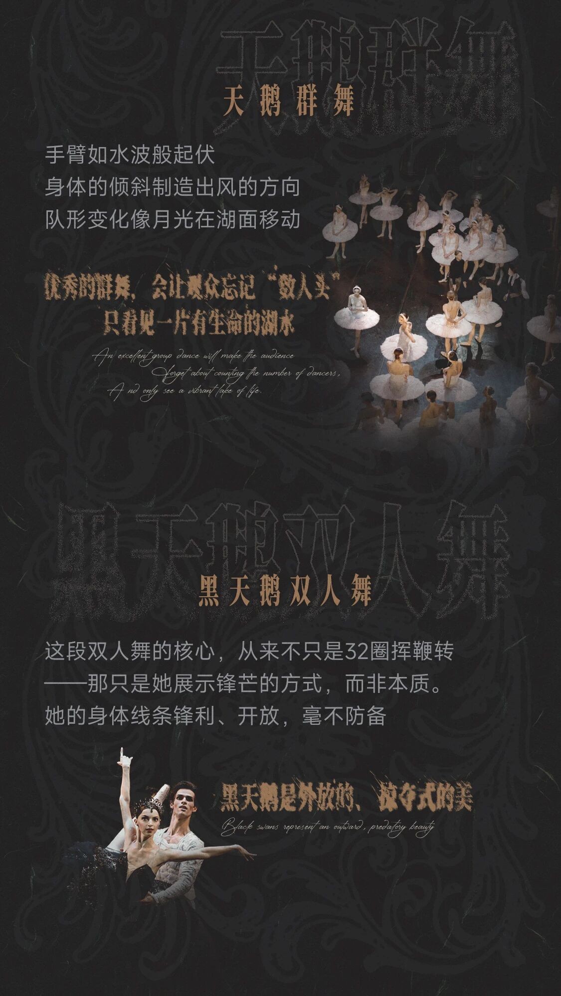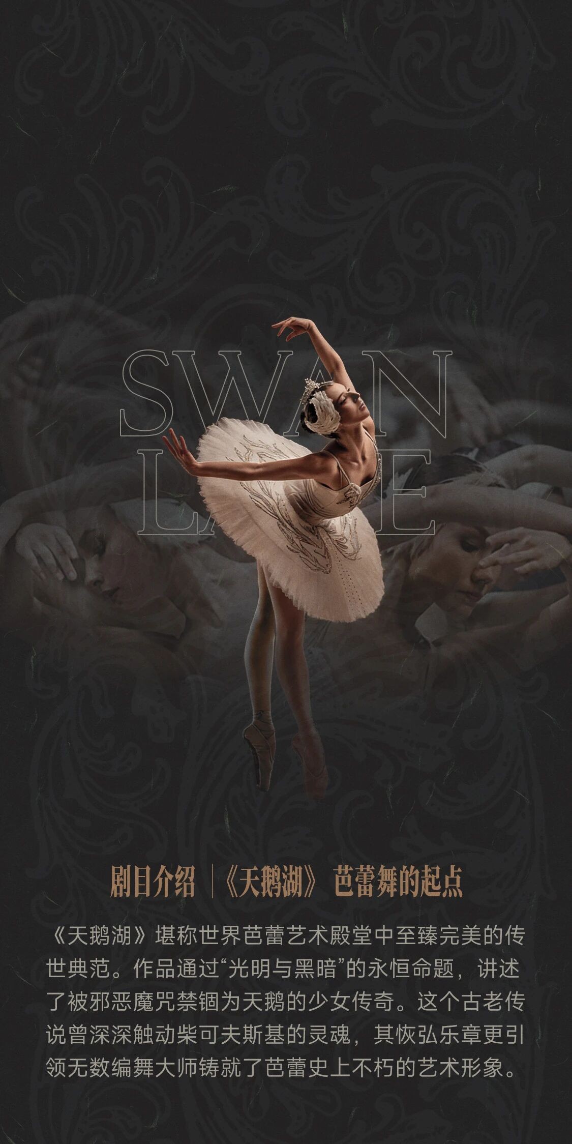 《天鹅湖》堪称世界芭蕾艺术殿堂中臻于完美的传世典范。作品围绕“光明与黑暗”的永恒命题,讲述了被邪恶魔咒禁锢、幻化为天鹅的少女的传奇故事。这个古老传说曾深深触动柴可夫斯基的灵魂,其恢弘乐章更引领无数编舞大师塑造了芭蕾史上不朽的艺术形象。