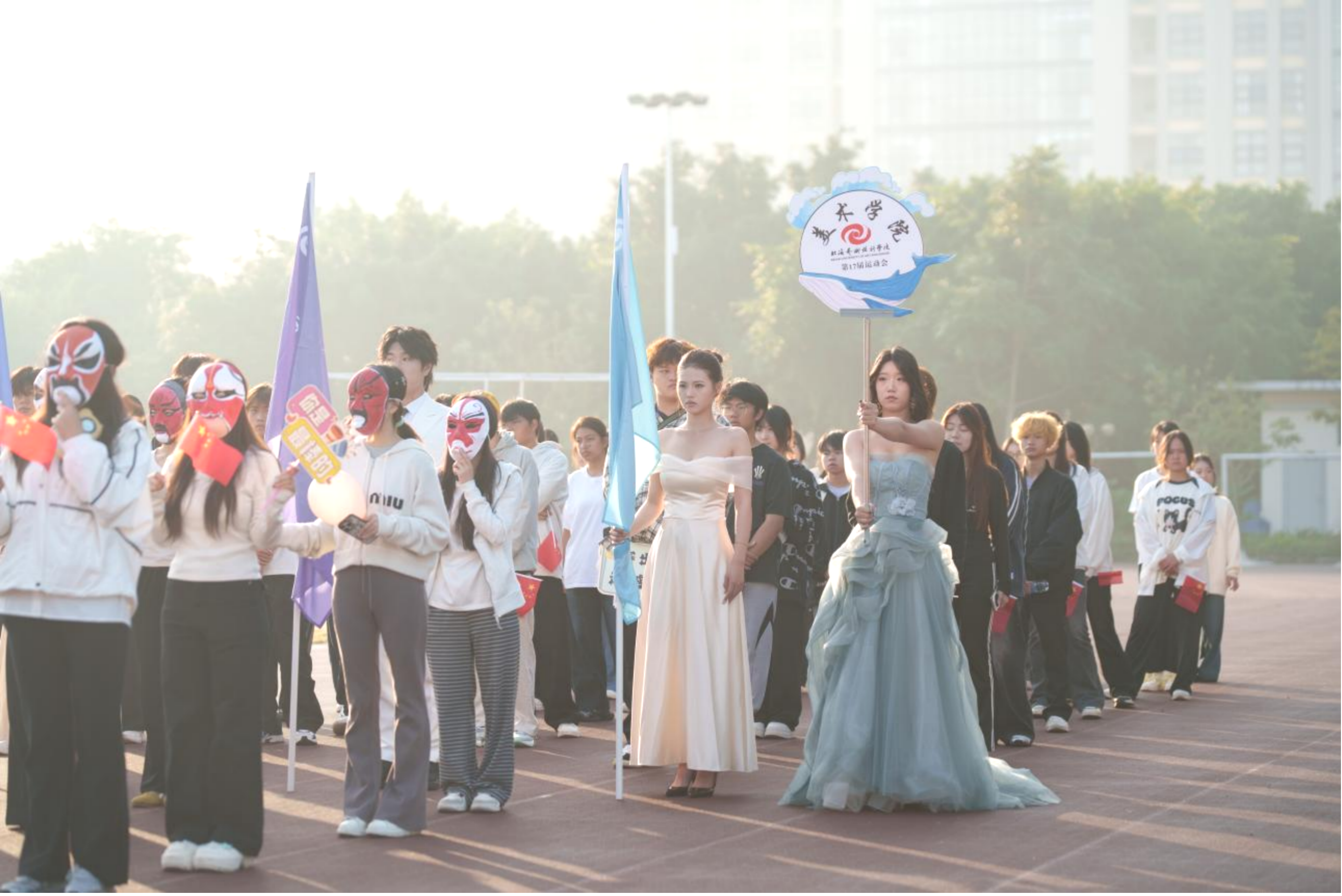 12月19日上午,第十七届运动会在西区操场正式开幕,美术学院方阵高喊着“魅力美院,激情无限,超越自我,勇往无前”的口号,精神抖擞地走过主席台。操场上,分院服务站的师生们全程坚守岗位,成为运动员们最坚实的后盾。他们时刻关注赛程,及时提醒大家按时检录,确保比赛顺利进行,同时,也为运动员们准备好饮用水,提供贴心的后勤保障。每当有美院学子在赛场上拼搏时,操场上的师生们都会用目光紧紧追随,并不时为他们送上加油声和掌声。赛场内外,师生们用镜头记录下运动员们的每一个精彩瞬间。他们用最朴实的行动和最细致的服务,为运动员们保驾护航。