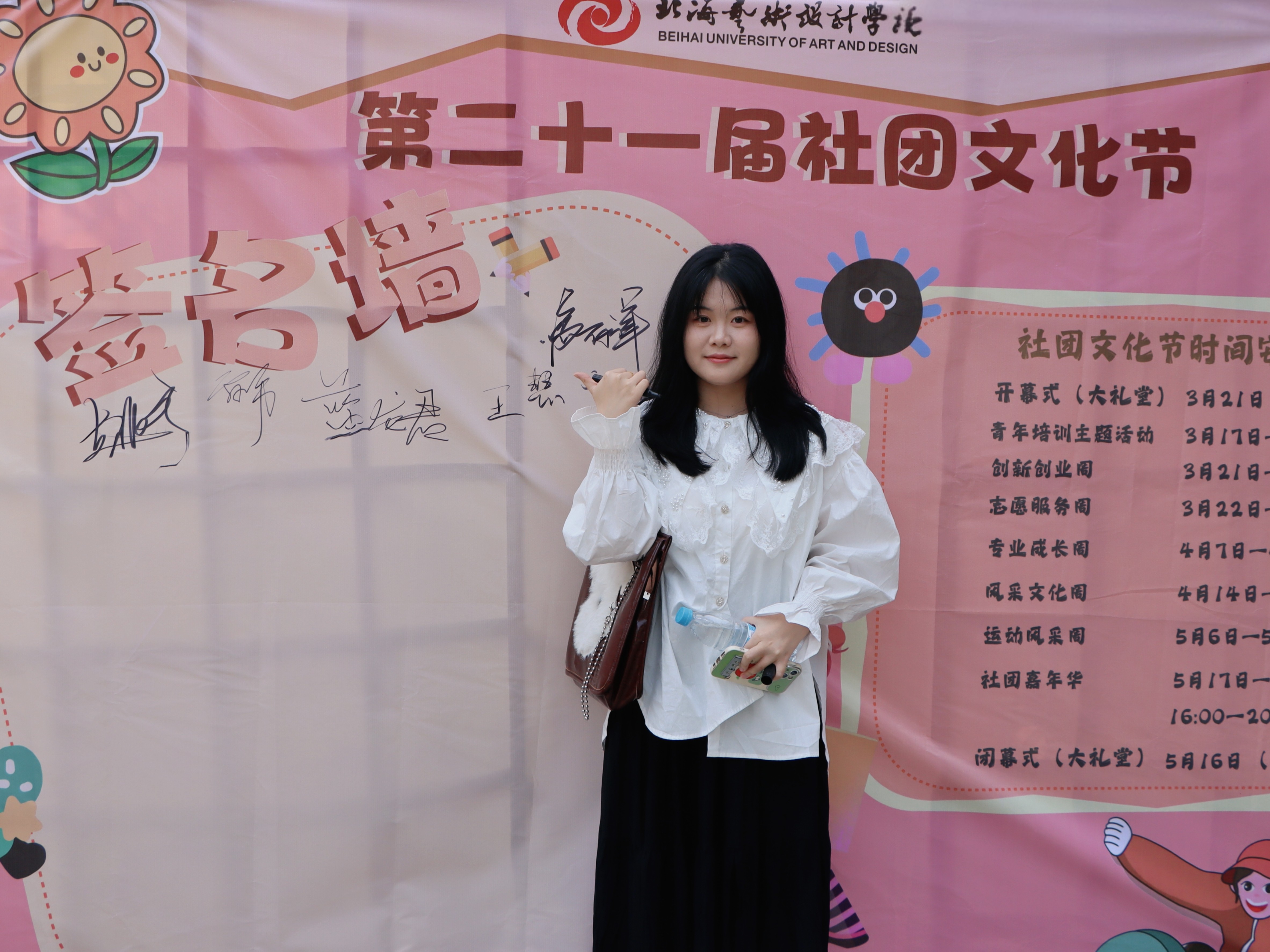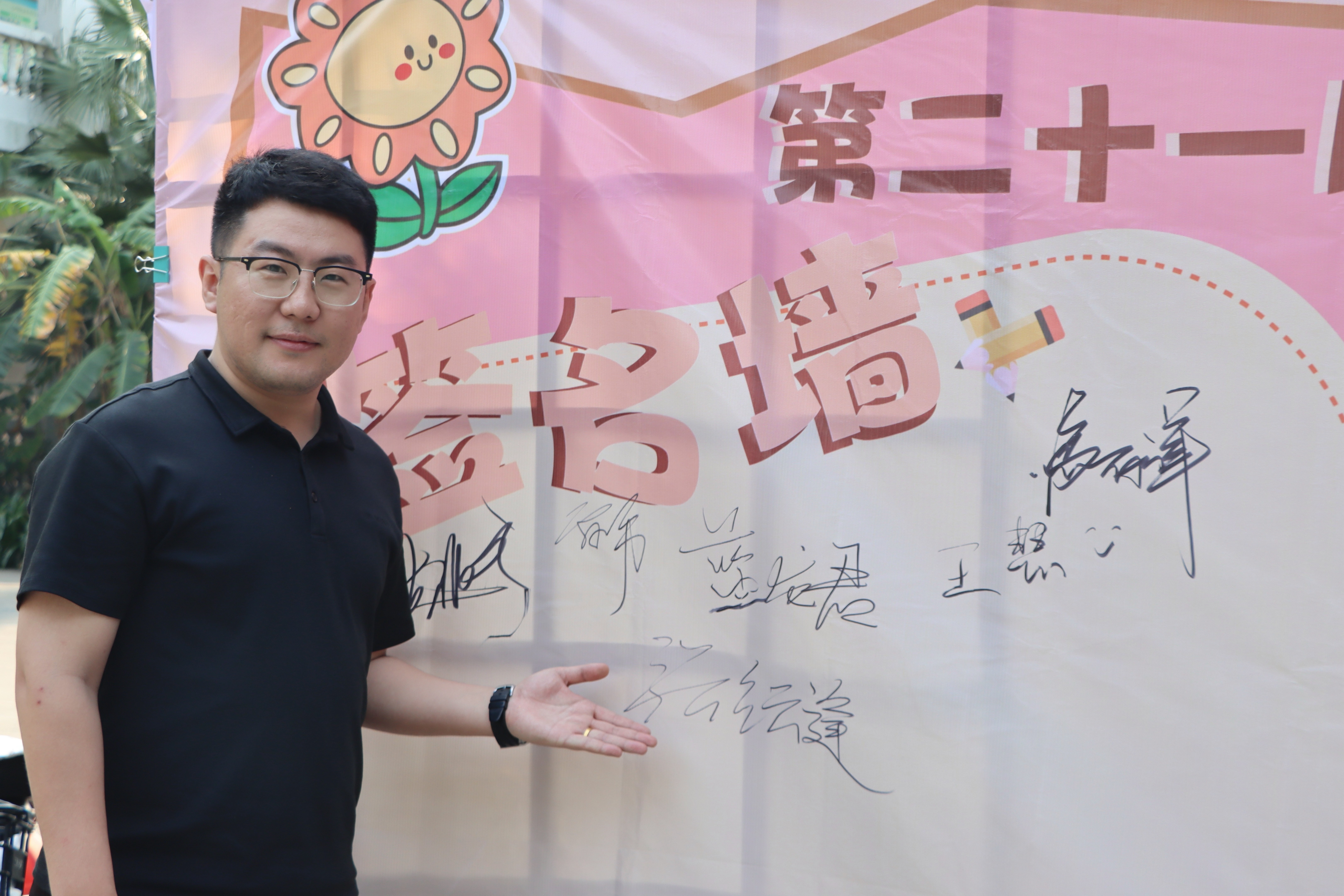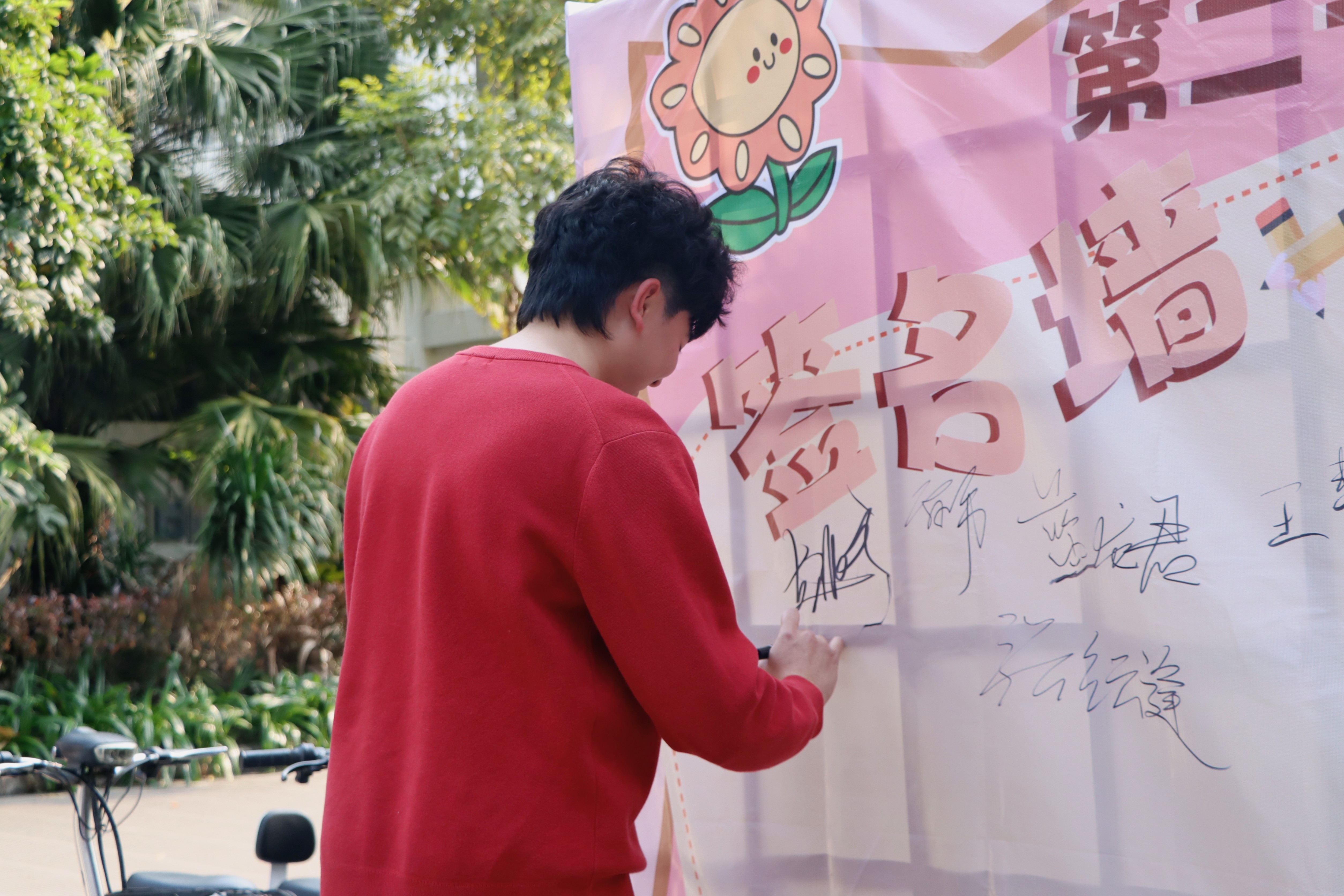 当第二十一届社团文化节开幕式圆满落下帷幕,大礼堂外热烈的氛围丝毫不减。老师、社管部工作人员与社团同学们满怀着对社团的热忱,纷纷在签名墙上签下自己的名字,每一个名字都倾注着对社团文化的热爱,以及对社团未来蓬勃发展的殷切期盼。