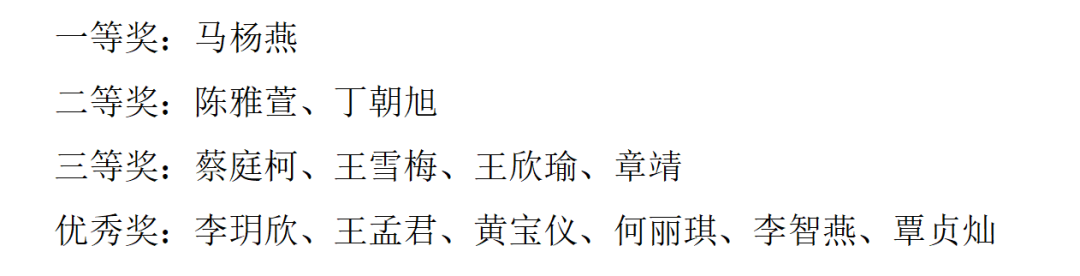 陈美霖老师为三等奖获得者章婧、王欣瑜、王雪梅、蔡庭柯颁奖