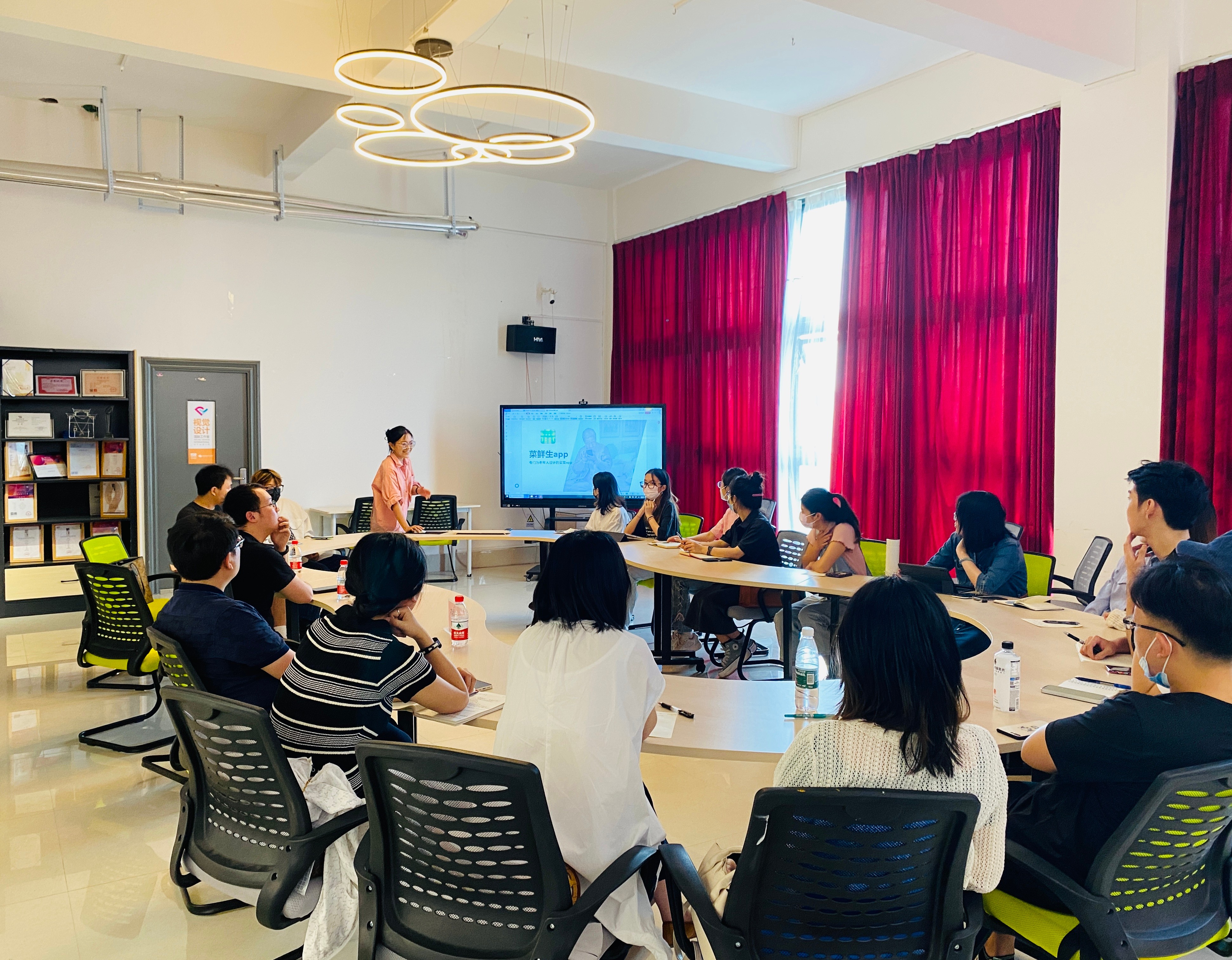 参观过后,在设计艺术学院国际工作室展开师生座谈,会上就搭建校企合作平台,紧密开展校企合作对接,探索产教融合模式和人才培养方案,以及同学们关心的就业和竞赛要求等方面展开深入交流。