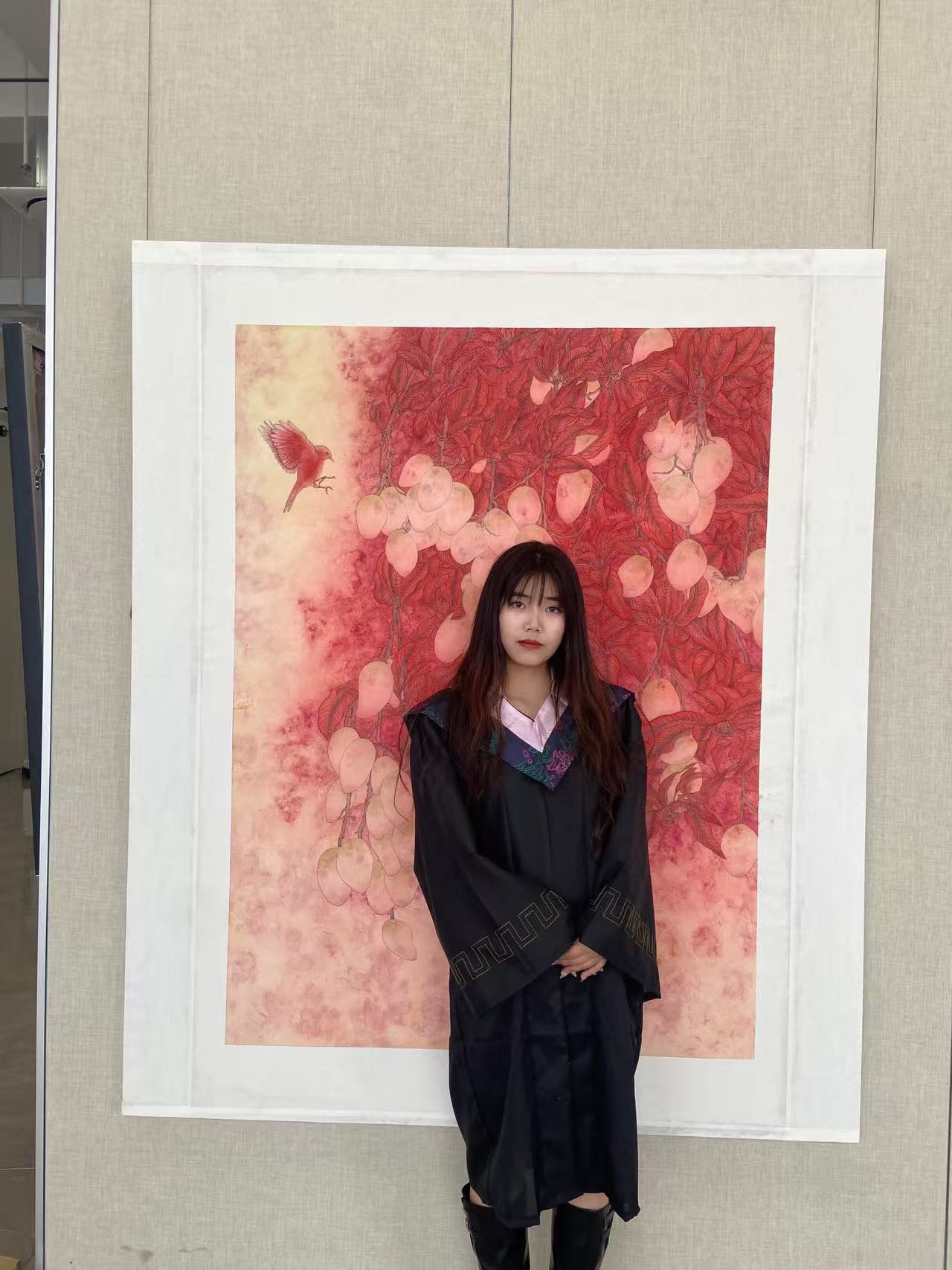 莫文姬,女,2003年1月出生,广东湛江人, 是北海艺术设计学院2021级绘画专业中国画方向的学生。在漫漫求学途中,她始终兼顾传统与创新,一边扎实研习素描、写意、工笔、书法篆刻等国画核心技法,一边用心掌握计算机应用、AI软件、PS数绘等现代数字艺术技能,为自己的艺术教育之路打下了坚实的基础。