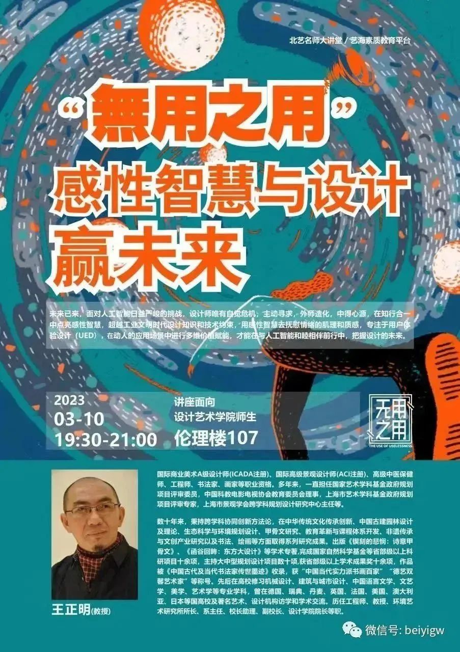 讲座预告|王正明《“无用之用”——感性智慧与设计赢未来》