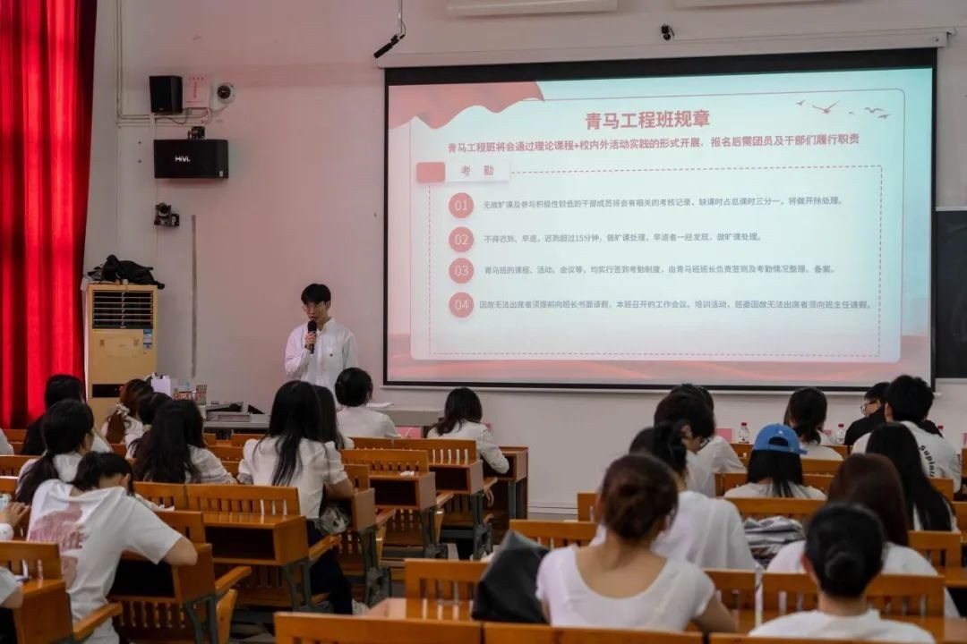 学院分团委主席田劲夫在开班仪式上向团员干部介绍青马工程的基本情况和主要开展形式,青马工程培训班的规章制度、分班及选拔制度等。