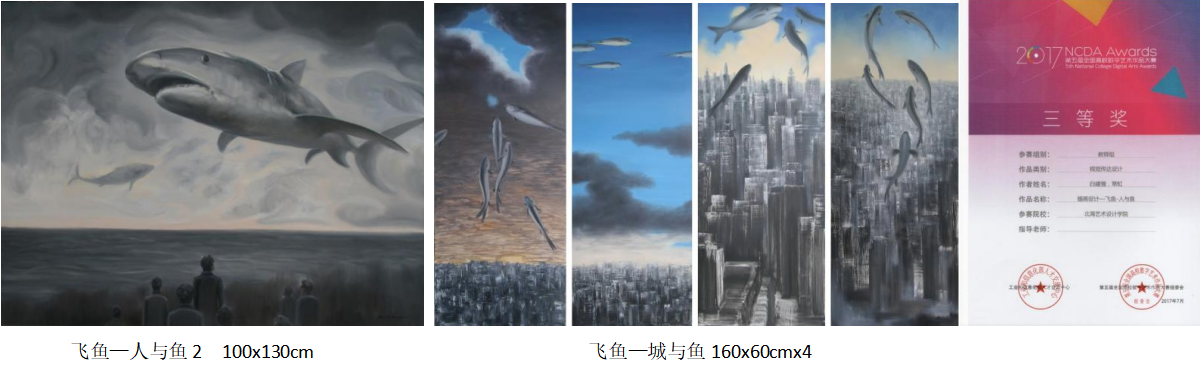 白建强老师致力于视觉传达设计、文创产品设计研究,积极投身科研,推进学校内涵建设发展。先后主持参与课题27项,其中主持课题6项(省级4项,校级2项),参与课题21项(省级11项,校级10项);发表论文近30篇,其中国家级核心期刊论文1篇,国际权威期刊SCI2篇;担任副主编出版中国建材工业出版社“十三五”规划教材《色彩基础》、《设计构成》2本。发表了优秀艺术作品30余幅,作品入选各类展赛并获奖,如作品《飞鱼—城与鱼》获第四届全国高校数字艺术大赛教师组一等奖;作品《码头之晨》在第二届“国青杯”全国高校艺术与设计作品展评教师组一等奖;作品《海上丝路之起点•码头》入选文化部文化艺术交流中心“行一带一路 品墨韵中华”全国美术人才作品展;作品《码头之晨》入展广西文联主办的“喜迎十九大---广西美术书法摄影作品展”广西博物馆展出;作品《城之一》入选江苏省首届青年油画作品展;作品《海上风云系列》入展广西政协书画院主办的弘扬“丝路文化”助推“一带一路”——广西政协海上丝绸之路书画摄影展;油画作品《码头01》在“唱响价值观,共筑中国梦”美丽北海 2017年北海市青年美术作品展获优秀作品奖;2016年被北海艺术设计协会评为年度“北部湾之星”。