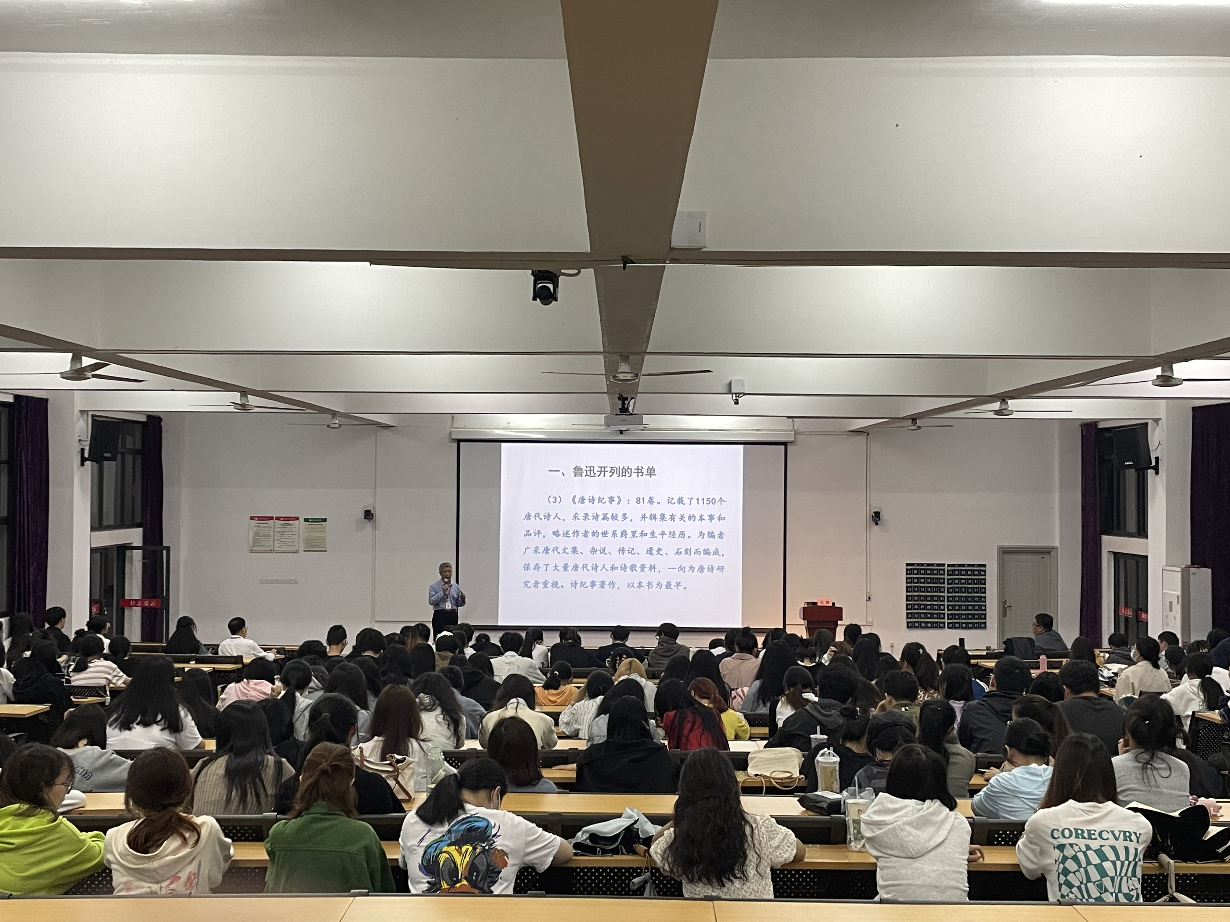 为提高我院学生文学阅读能力,培养学生勤学求新意识,5月12日晚,王勇教授应邀为生做了一场题为“从鲁迅开列的书单谈起——我们应该怎样更好地学习古代文学”的讲座。本场讲座旨在探讨学习古代文学的方法,引起了学生的广泛关注。人文教育学院汉语言文学专业全体师生参加了本次讲座,讲座由汉语言文学教研室副主任姜玮主持。