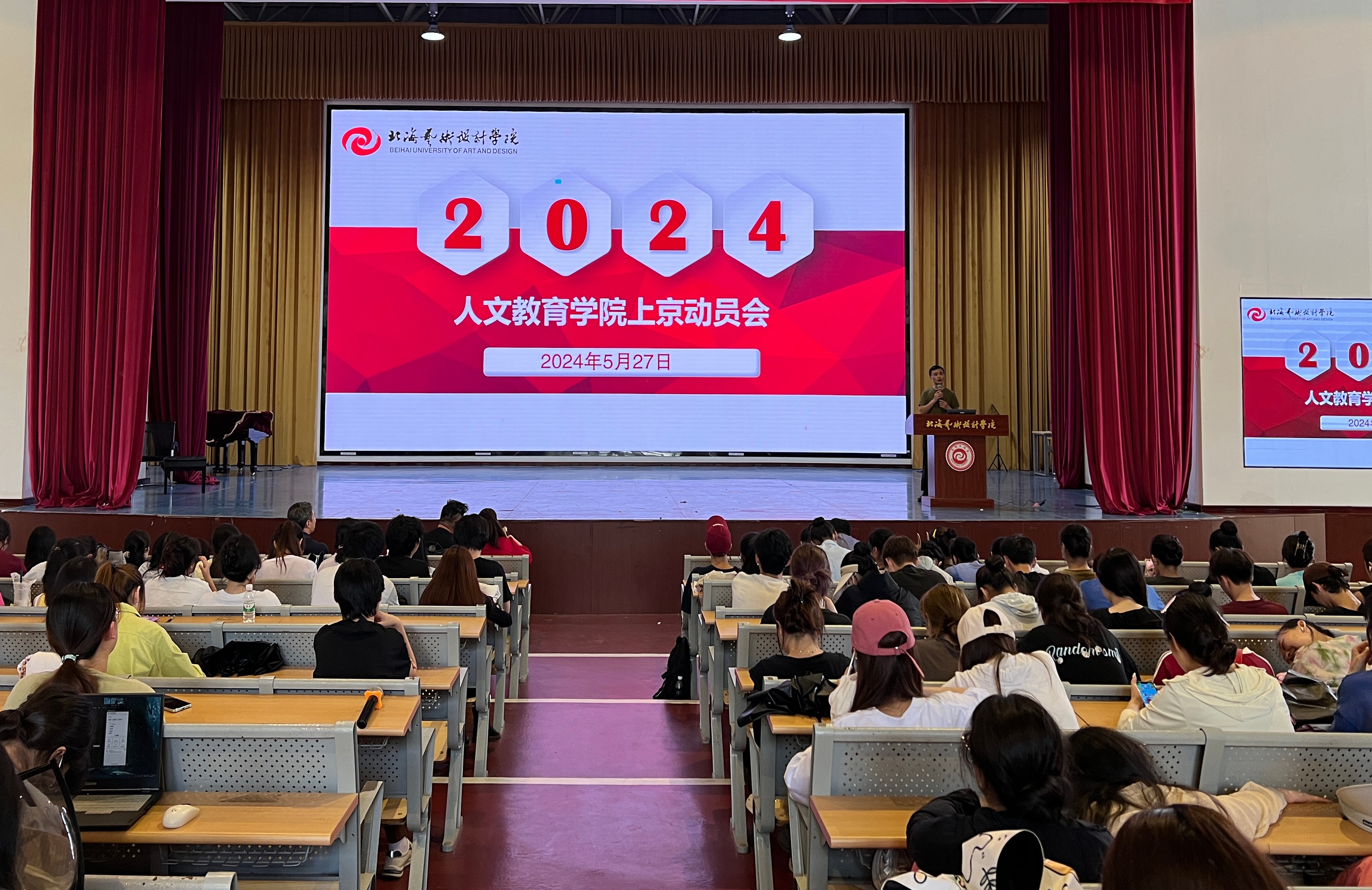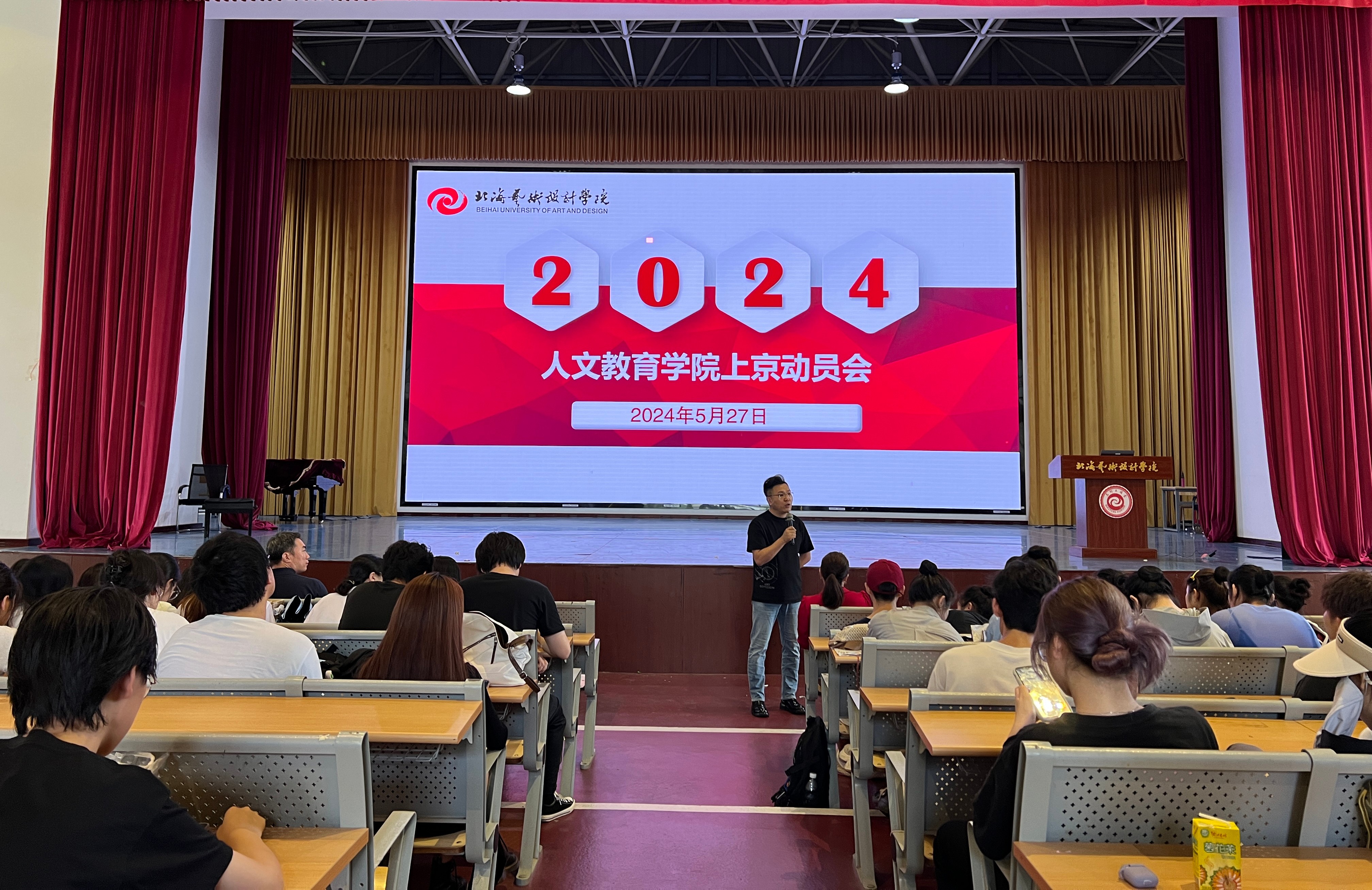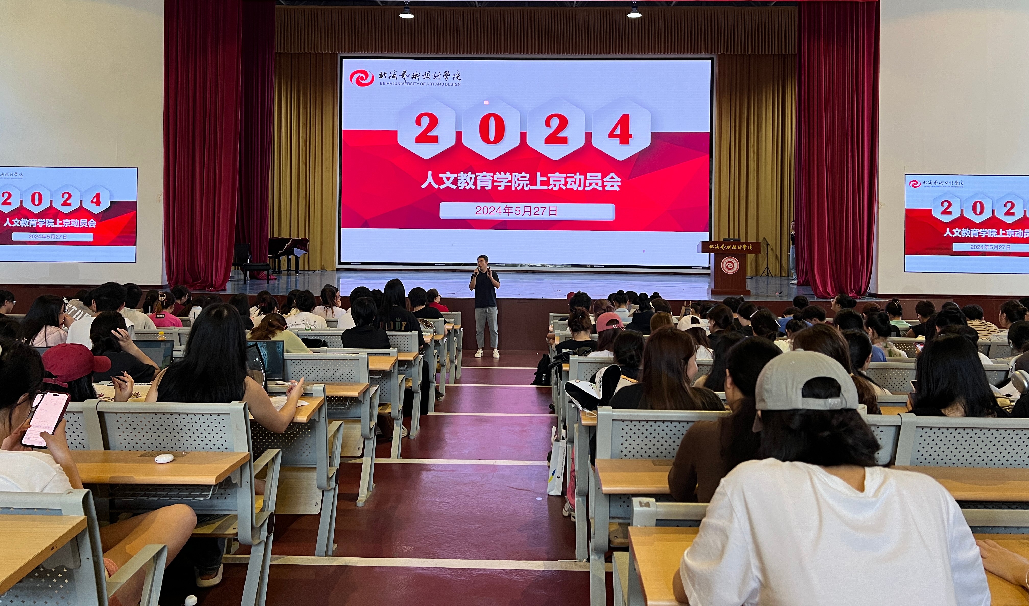 2024年5月27日人文教育学院上京动员大会在西区大礼堂顺利召开。诚邀学校邱杰副校长、学院熊秀峰院长、李谦副院长出席讲话。本次大会由邓欢副书记主持,2021级舞蹈表演、汉语言文学、学前教育、哲学、艺术教育专业全体同学参加。