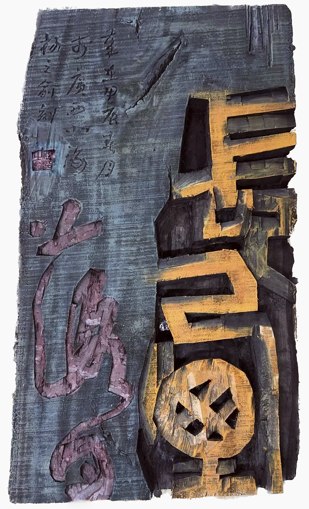 刻字艺术是植根于书法、传统刻字,升华而成的一门新的独特的艺术形式,它古老而又年轻。融合了篆刻、绘画、版画、雕塑等多种艺术,同时还涉及设计构成艺术,融合色彩构成、平面构成、立体构成于一身。