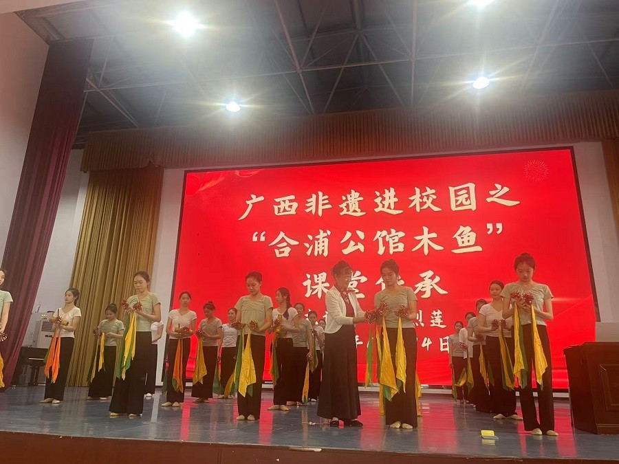 采风考察我们特别邀请了广西非物质文化遗产“合浦公馆木鱼”第四代传承人  、广西戏剧家协会会员、原北海市戏曲家协会副主席、合浦县金牡丹艺术团团长,廖烈莲。她把广西非遗之“合浦公馆木鱼”课堂的教学与实践体验相结合,让舞蹈表演专业的学生们深入了解并传承这一独特的非物质文化遗产。
