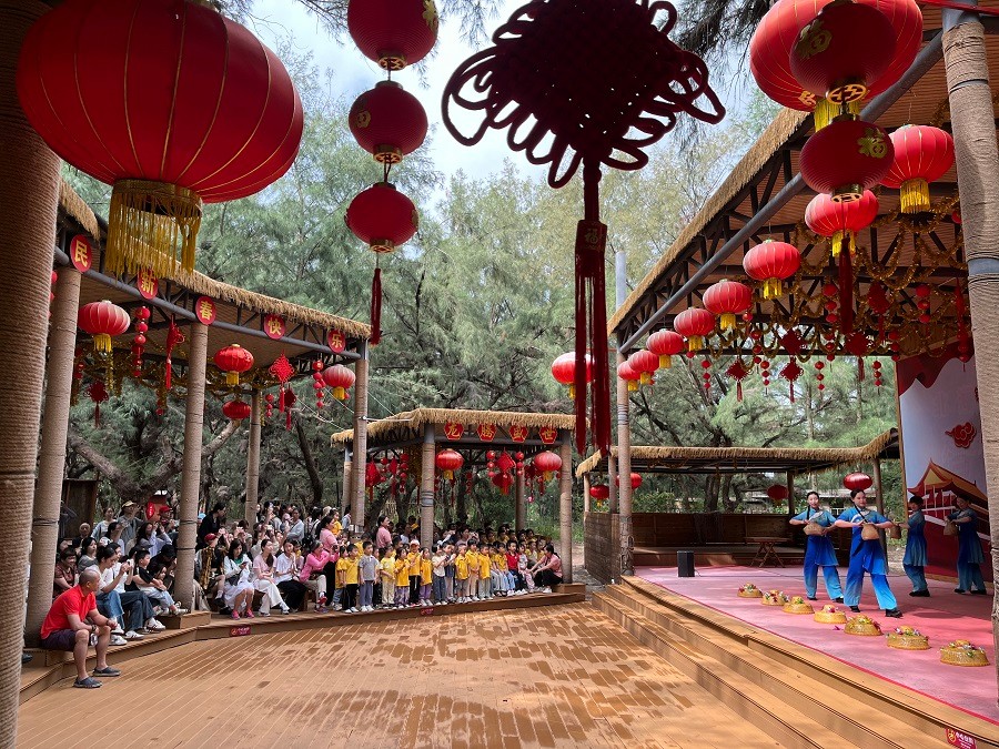 观摩了非物质文化遗产代表性项目合浦县有名歌舞“耍花楼”其表演风格生动诙谐、自由活泼,动律上讲究圆转柔美、自然协调,舞者须随着击打部位的转移不断改变身体倾斜角度,最初演出时无唱腔和乐器伴奏,由艺人自编自唱,同时用舌头和手指弹动的声响伴奏,以增添舞蹈的欢乐气氛。