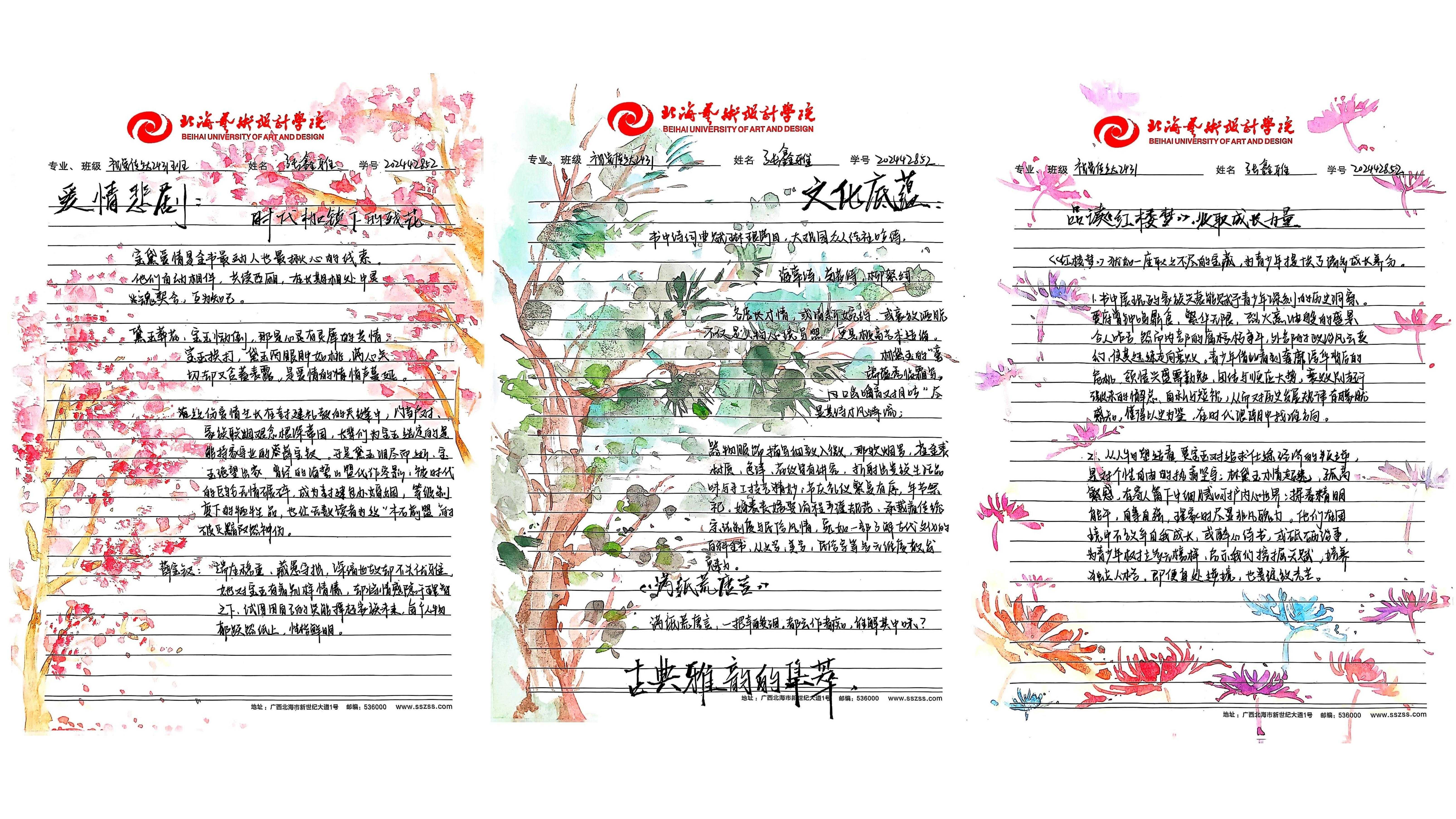 本次大赛已构建起“全员参与、全程用心、全面展示”的特色育人模式,不仅融入文学院课程体系之中,更是传承中华优秀传统文化的重要载体。大赛将艺术思维与创新意识融入经典解读,实现跨学科融合创新。文学院以四大名著读书笔记大赛为抓手,引导学生深入研读经典,传承中华优秀传统文化,形成独立思考的学术品格,培养具有深厚人文底蕴的人才。以下是部分优秀作品展示:
