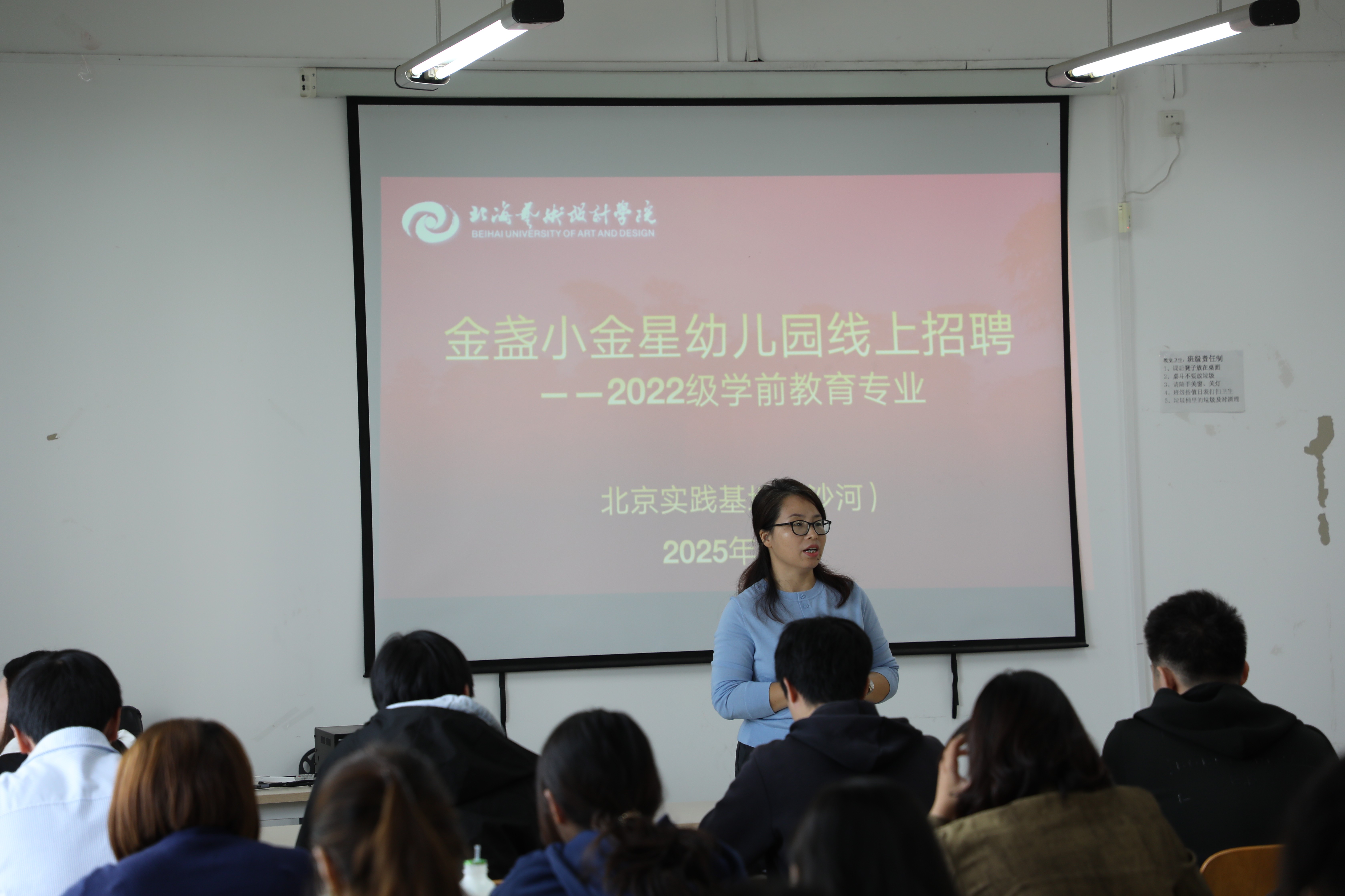 2025年10月15日,为切实解决2026届大四学生毕业论文困惑与实习就业难题,教育学院在北海艺术学院北京实践基地沙河励行楼203教室召开毕业实习就业指导工作。教育学院院长熊秀峰主讲本次的指导会议,北京实践基地沙河副主任严腾、教育学院教务办主任黄海林、学前教育教研室主任覃思、学前教育专业教师雷蕊,参加出席本次会议。通过“政策引导+岗位对接+面试帮扶”三维联动,为学生未来发展注入强劲动力。