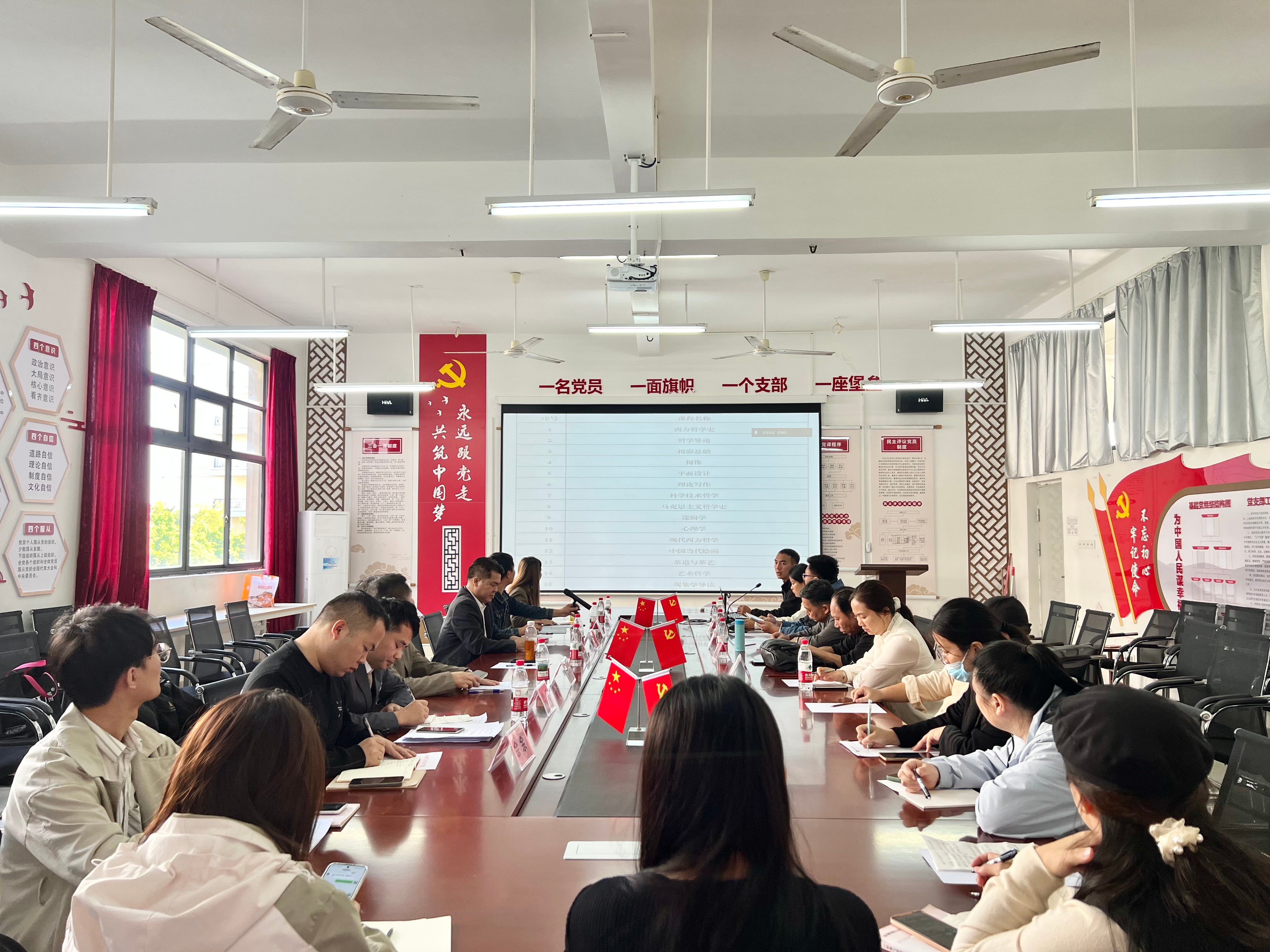 为进一步强化教学过程质量监控,精准把握期中教学动态,11月14日上午,哲学学院在公德楼204会议室召开2025-2026学年第一学期期中教学教师座谈会,会议采用“线上+线下”结合形式同时进行,由教务办副主任陈美杰主持,学院全体教职工参会。