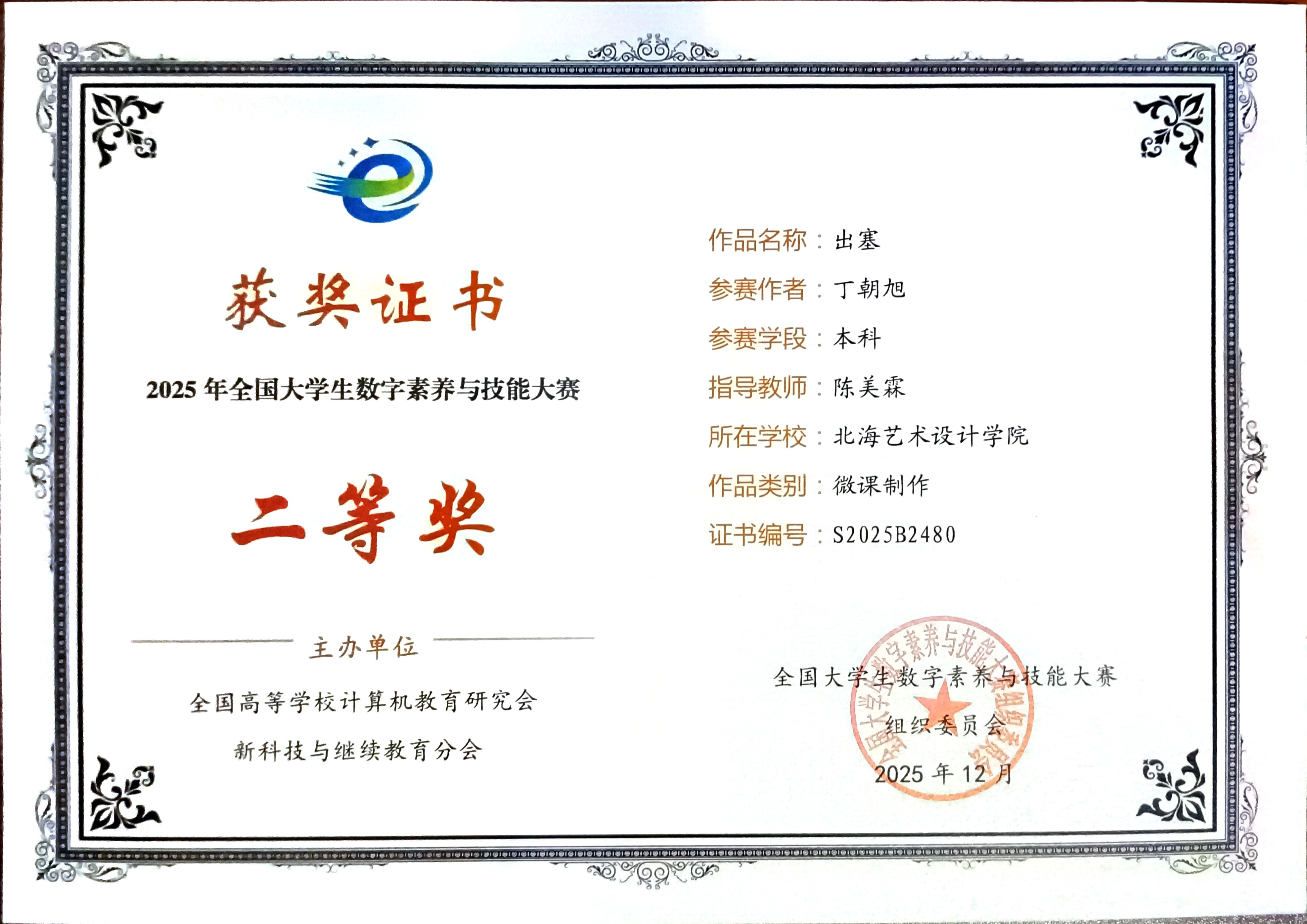 近日,2025年全国大学生数字素养与技能大赛落下帷幕我校教育学院学前教育专业2023级马杨燕同学2024级丁朝旭同学在陈美霖老师指导下,其微课作品分别荣获大赛一等奖和二等奖。