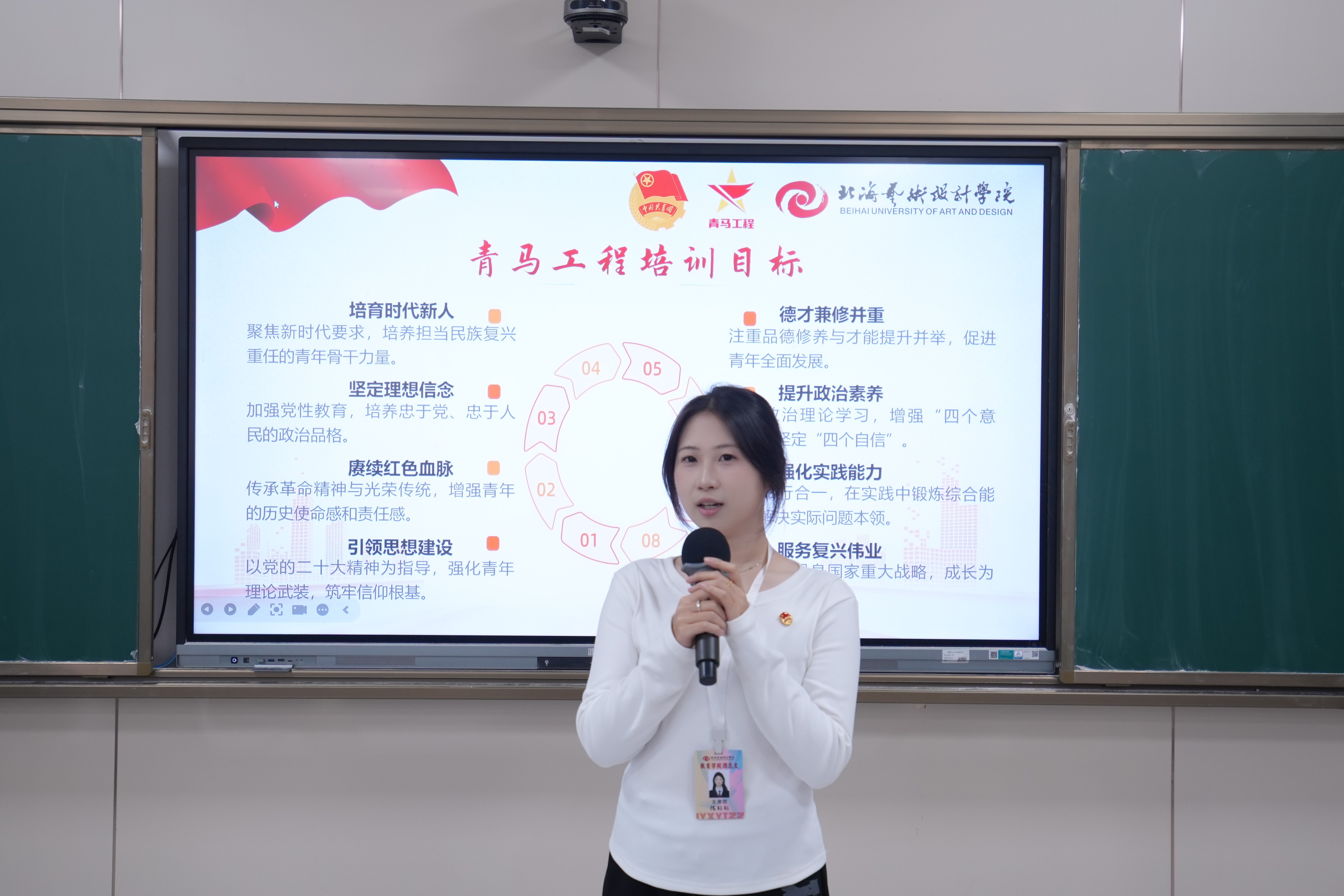 12月14日,教育学院与哲学学院联合在东区觉悟楼 401教室举办“青马工程”培训班开班仪式。哲学学院党支部书记谢伟、教育学院副院长蒙剑英、教育学院团总支书记陈美霖、哲学学院谢佩玲老师出席仪式,两院团员及学生干部参与培训。