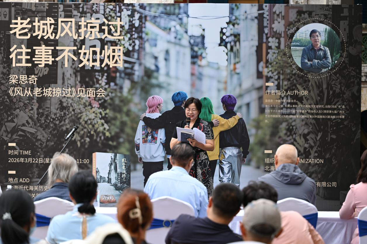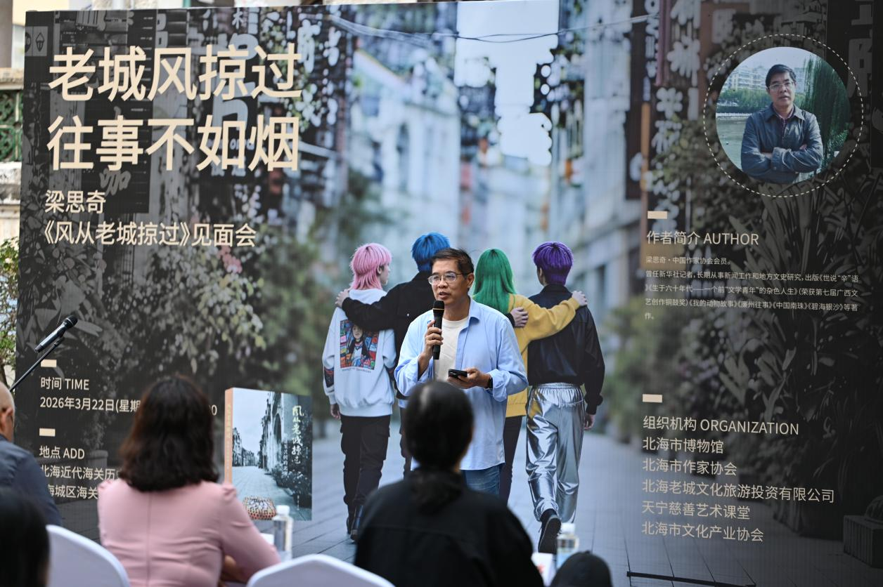 为进一步引导学子树立“以笔墨记录历史、以文章书写时代”的创作理念,推动学生在深入挖掘地方文史资源的过程中实现文史研究转化与创作能力的双向提升,3月22日,文学院学子在汉语言文学教研室副主任康宗明、教务办科研秘书陈宗惠、专任教师雷喆的带领下,应邀参加中国作家协会会员梁思奇先生《风从老城掠过:晚清至民国的北海》新作分享会。广西作家协会副主席庞白、北海市博物馆副馆长蔡安珍等嘉宾出席活动,与同学们共赴一场历史与文字的碰撞之约。