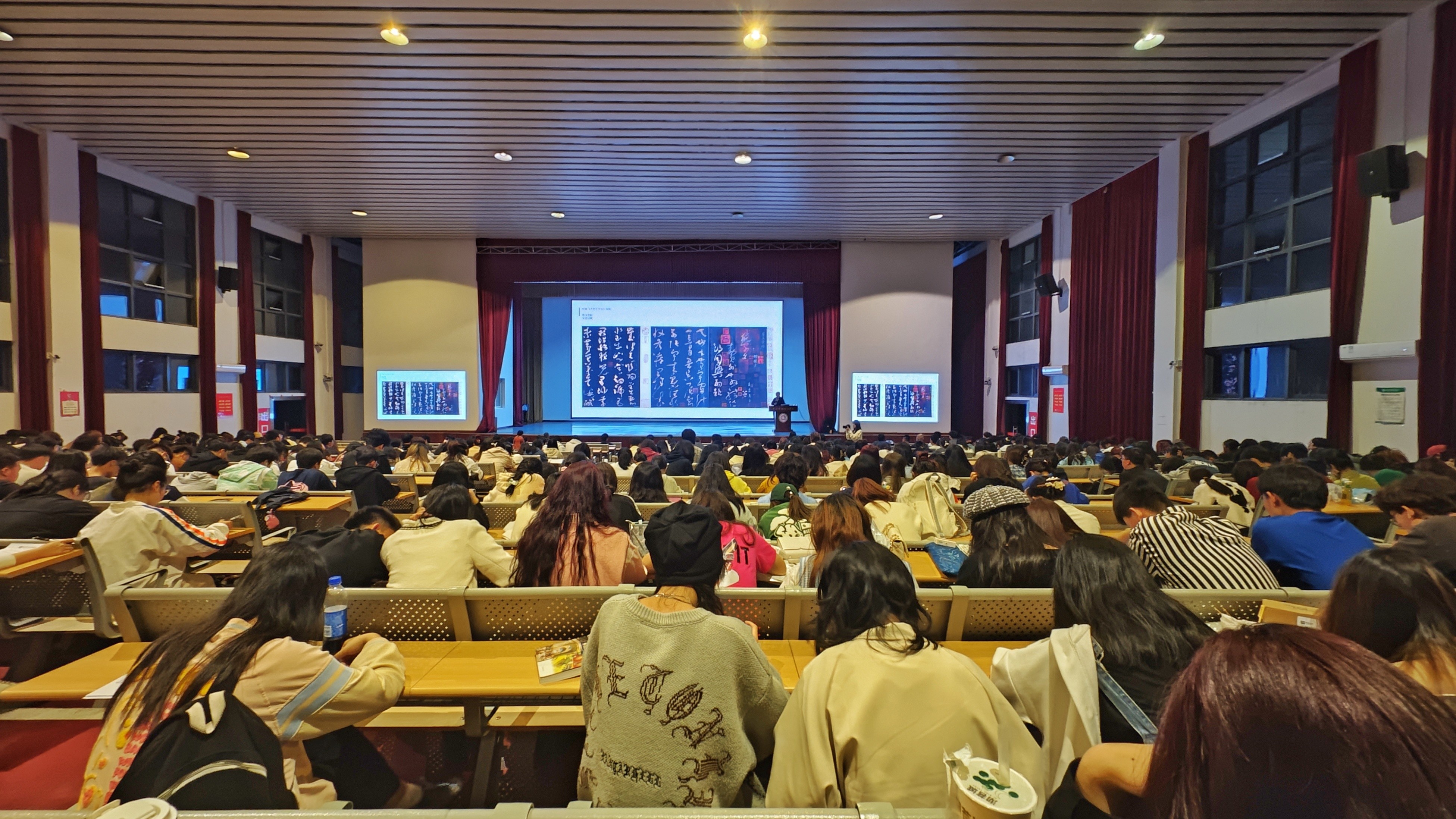 2023年2月18日晚7:30,中央美术学院周博教授于北海艺术设计学院西校区大礼堂,为美术学院师生开展题为《目击而道存:<千字文>传统与汉字字体系谱》的专题讲座。