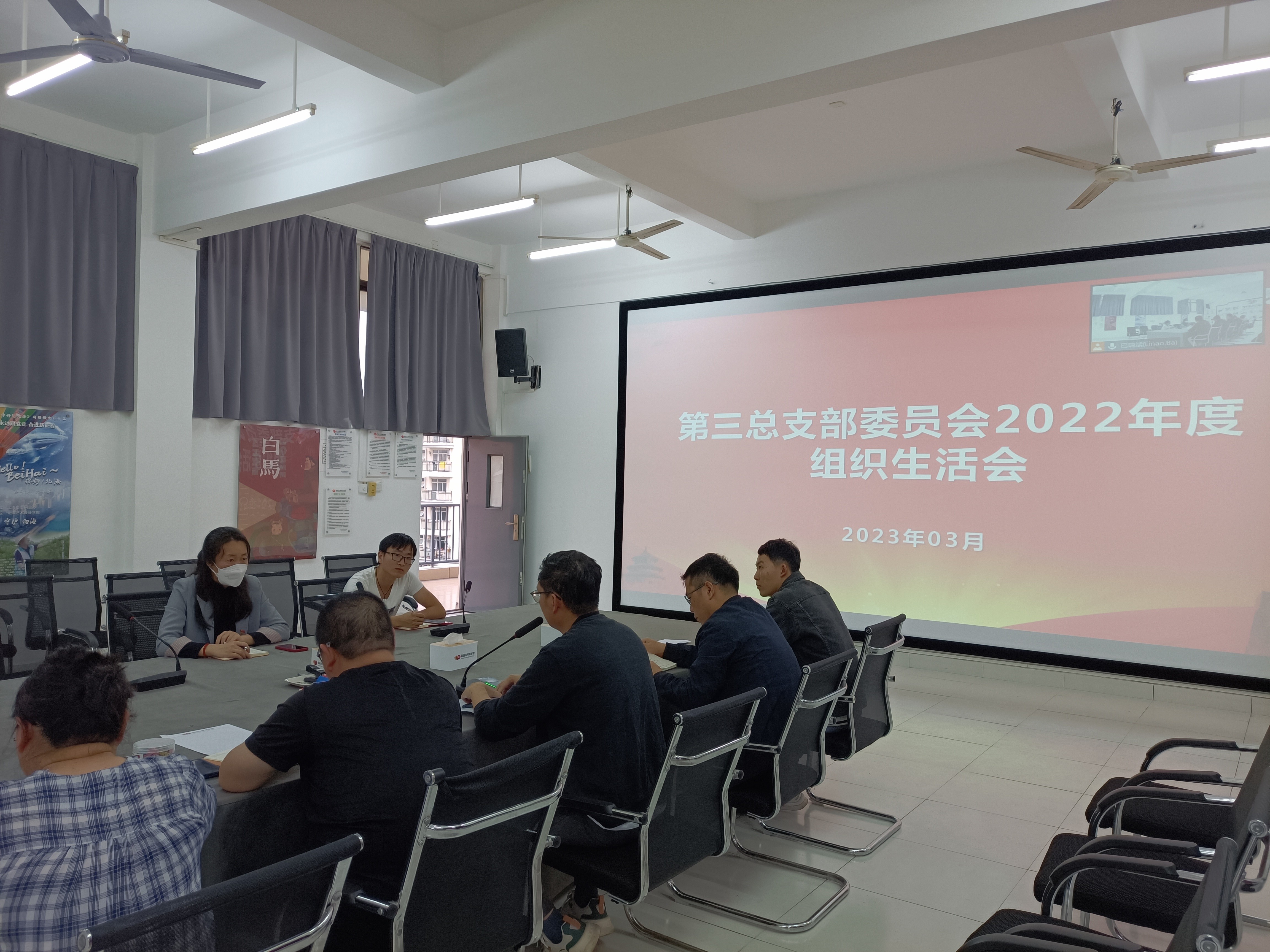 3月15日下午,2022年度第三党总支委员会班子民主生活会召开。会议以全面学习贯彻习近平新时代中国特色社会主义思想,深刻领悟“两个确立”的决定性意义,增强“四个意识”、坚定“四个自信”、做到“两个维护”,团结带领党员干部群众以担当作为、奋发有为的精神状态贯彻落实党的二十大作出的重大决策部署为主题,紧密联系党总支工作实际,查摆突出问题,开展党性分析,进行批评和自我批评,明确改进措施和努力方向。