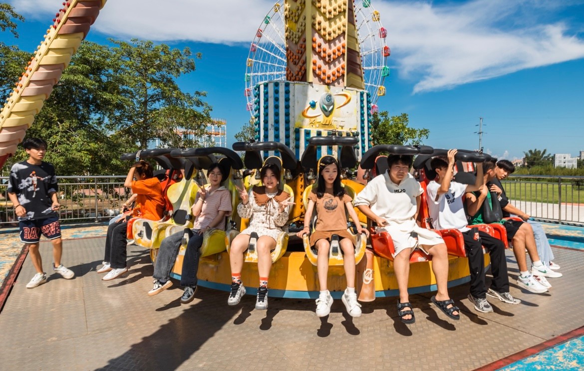同学们在各类项目设施中游玩体验,在惊叹与呼喊声中体会欢乐与成长,游乐其中逐渐熟悉了解彼此,更好地让大家融入新的集体,大家欢笑声一片其乐融融,充分展现北艺新生积极向上的精神风貌。火热骄阳下的园博园校区同样为同学们提供了空调休息室,为游园活动之余留出休憩的空间。