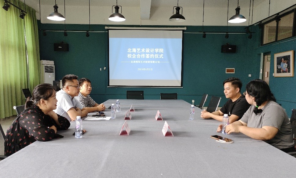 2024年4月2日,北海领军艺术培训有限公司宋丽军一行莅临美术学院,进行了一次富有成效的参观交流活动,并与学院成功签订校企合作协议。