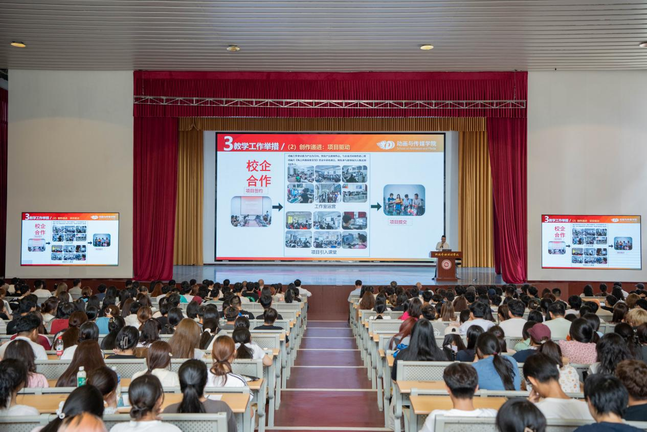 2024级新生专业介绍会的顺利召开,加深了同学们对专业的认识,激发了同学们对专业的探索热情,增加了同学们对专业的认同感,为同学们投入全新的大学生活和专业学习中指出了明确方向。前路浩荡,万物可期,相信动画与传媒学院学子会以更加沉稳自信的姿态面对未来的挑战,成为艺术设计界翘楚。(陈蔓延、吕艺麟、赵慕耀、易宜波、施浩、熊健、任伟/摄)