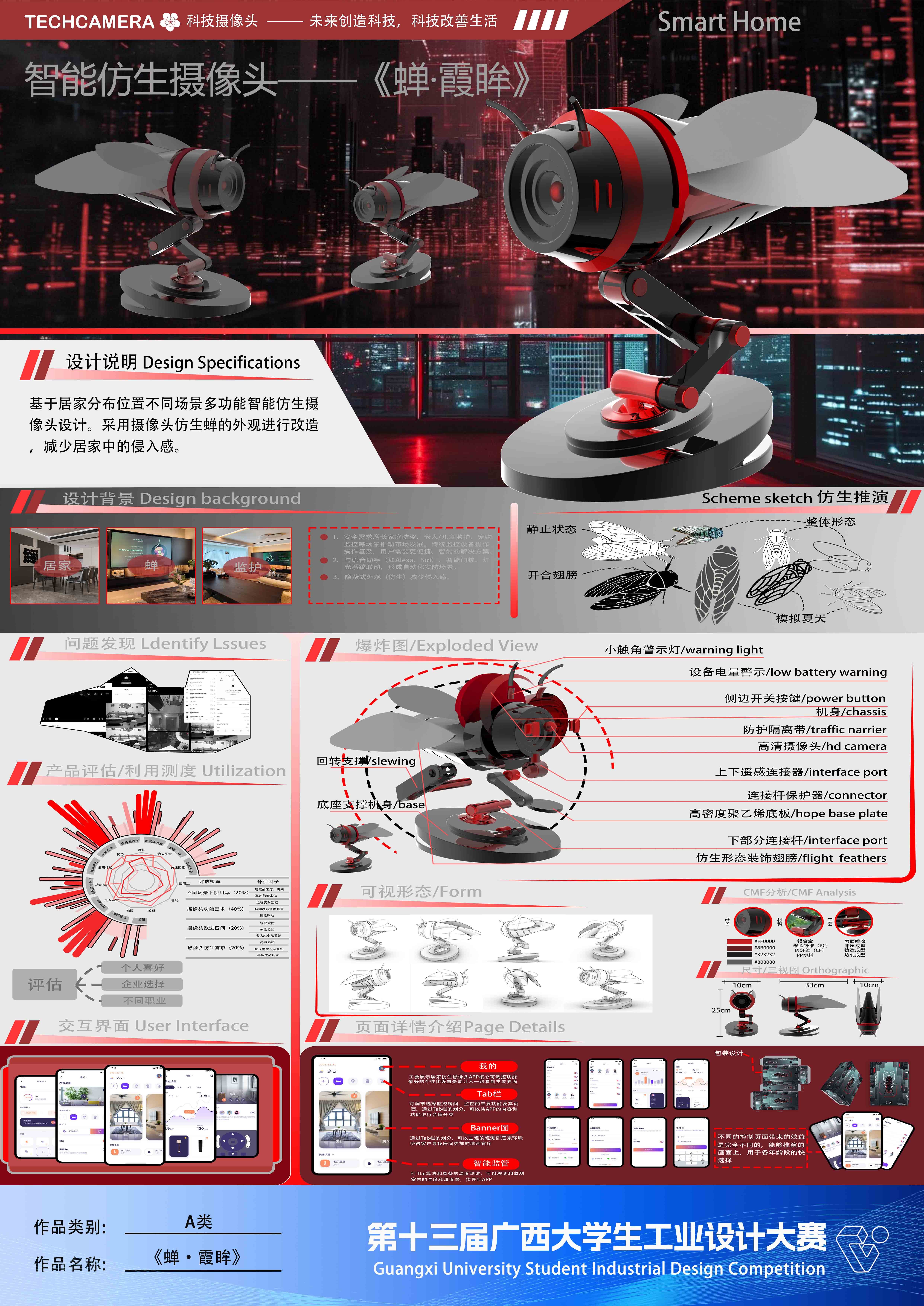 作品名称:《蝉 ·霞眸—智能居家仿生摄像头》