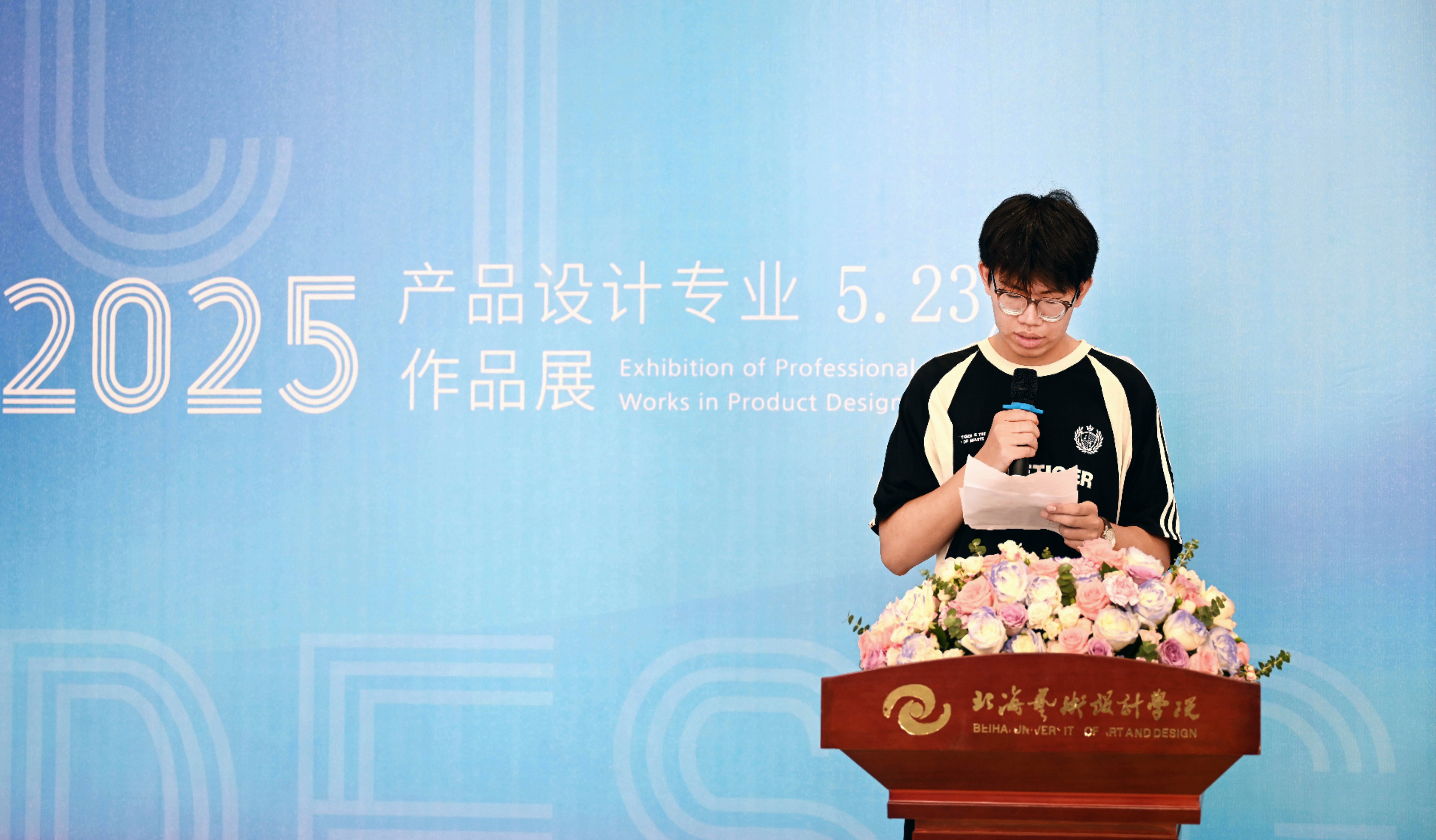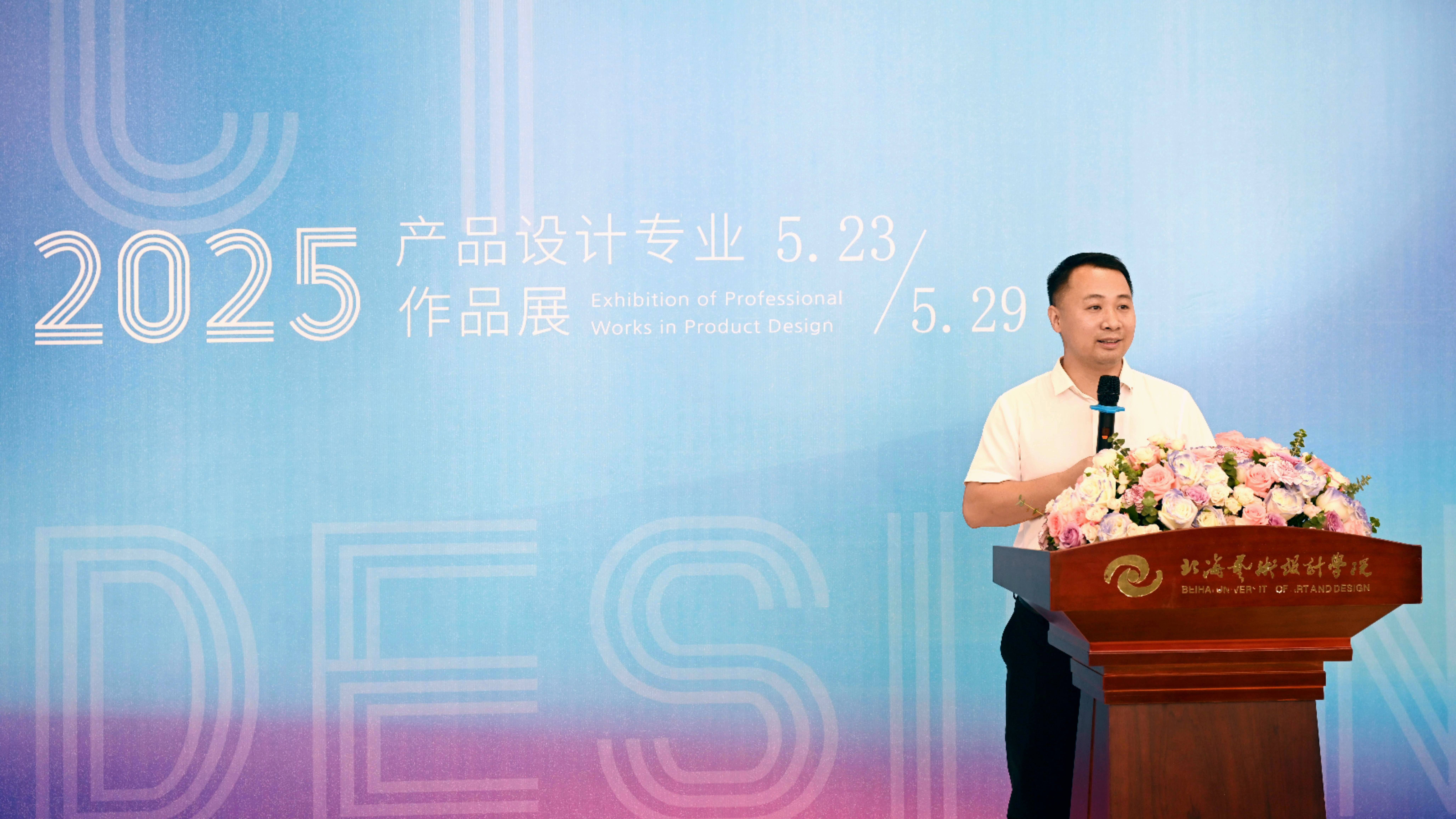 开展仪式上,邱杰副校长发表致辞,强调产品设计专业始终以培养创意强、实践强、创新强、职业能力强的应用型设计人才为目标,推动学生作品从作业到商品的实战转化。他高度肯定了师生们在传统工艺与现代设计融合中的探索精神,希望同学们拓展设计视野,紧跟时代,用设计的力量创造美好未来并鼓励学生继续以设计服务社会。