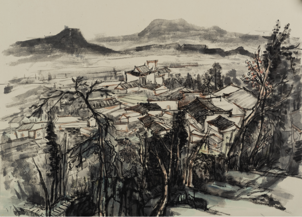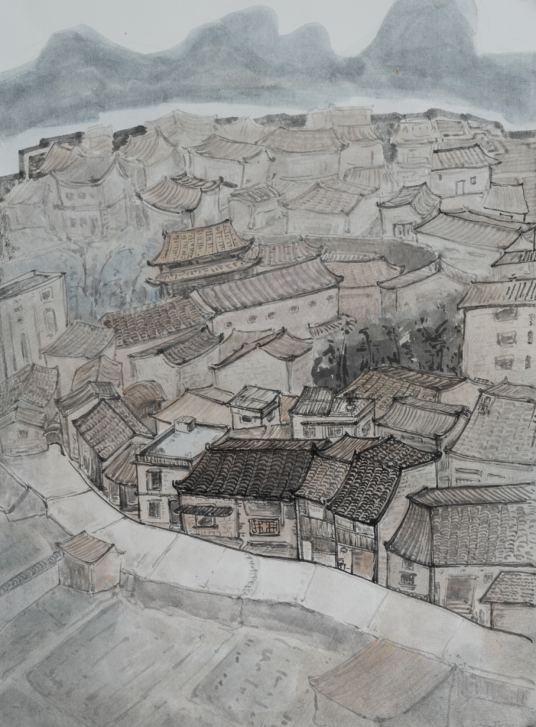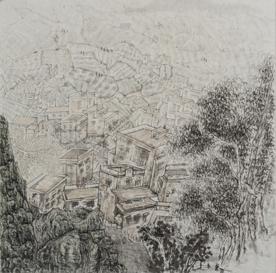 龙义敏教授作品《贺州古村印象之二》,40cmx70cm