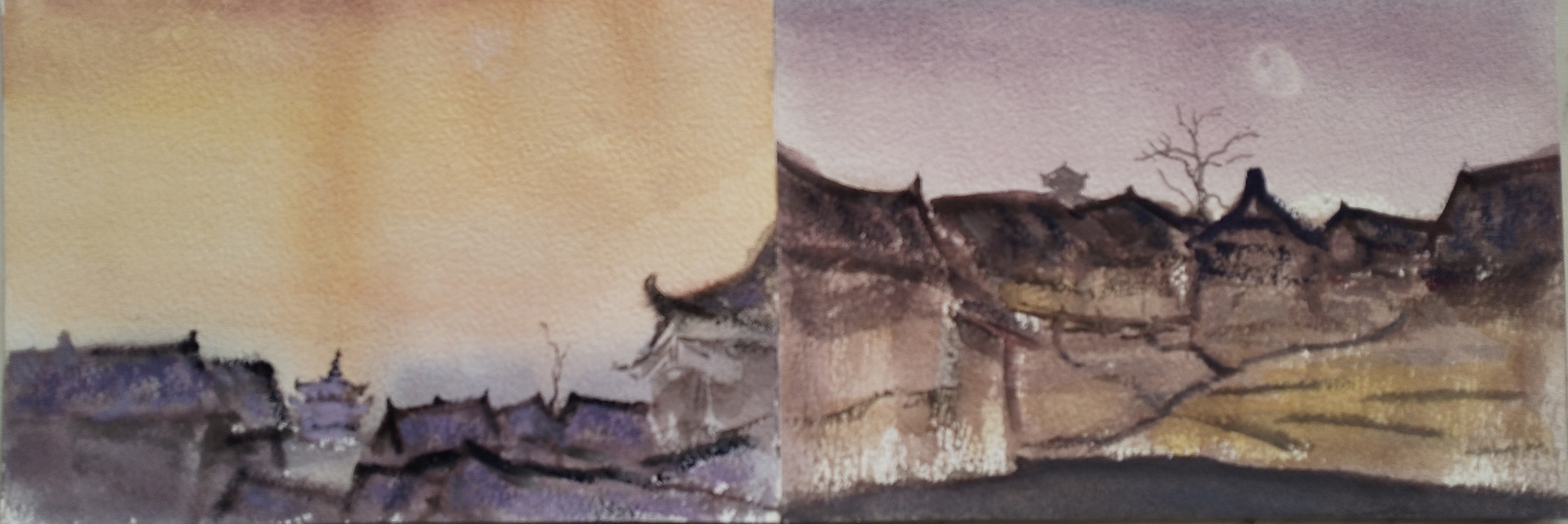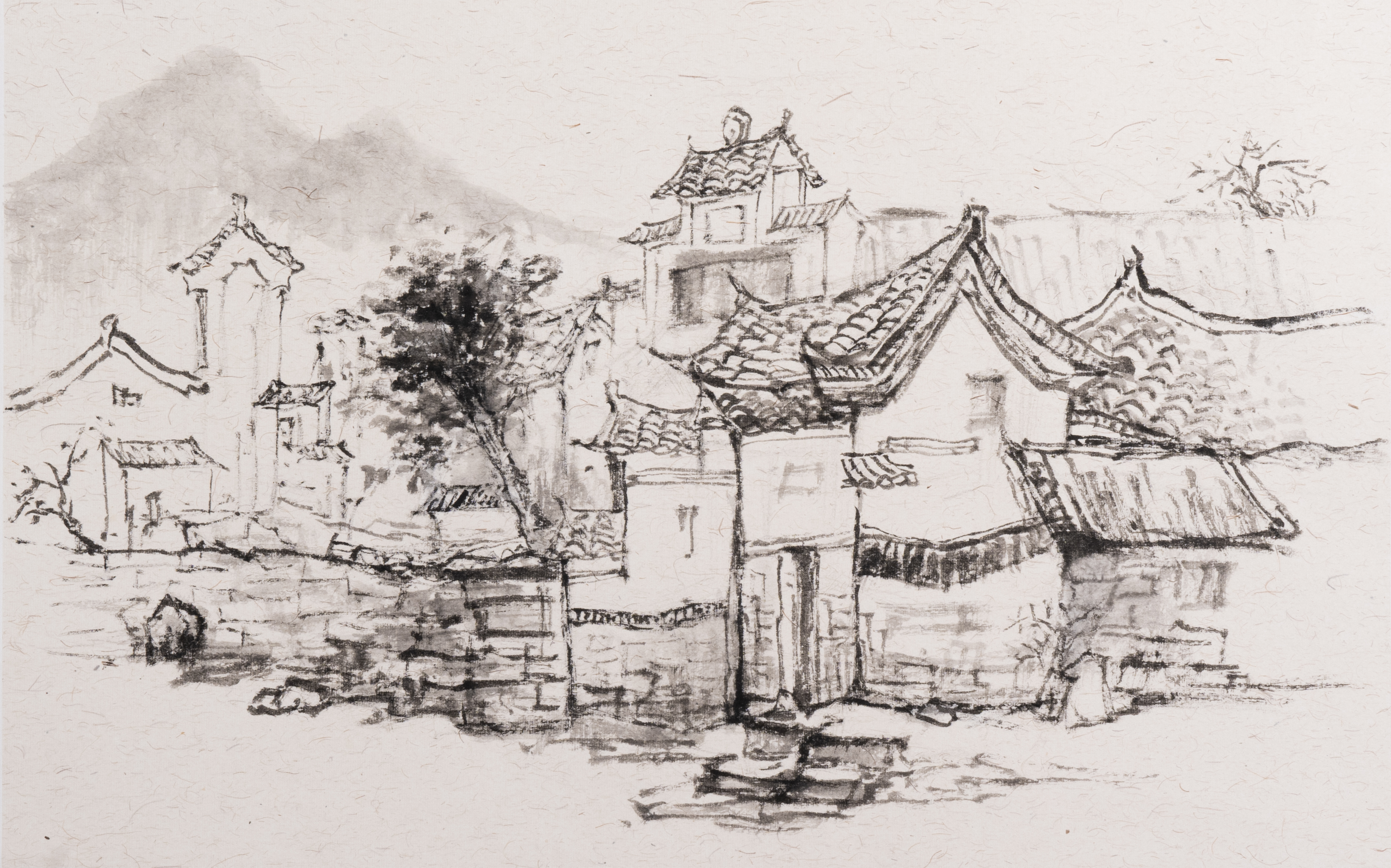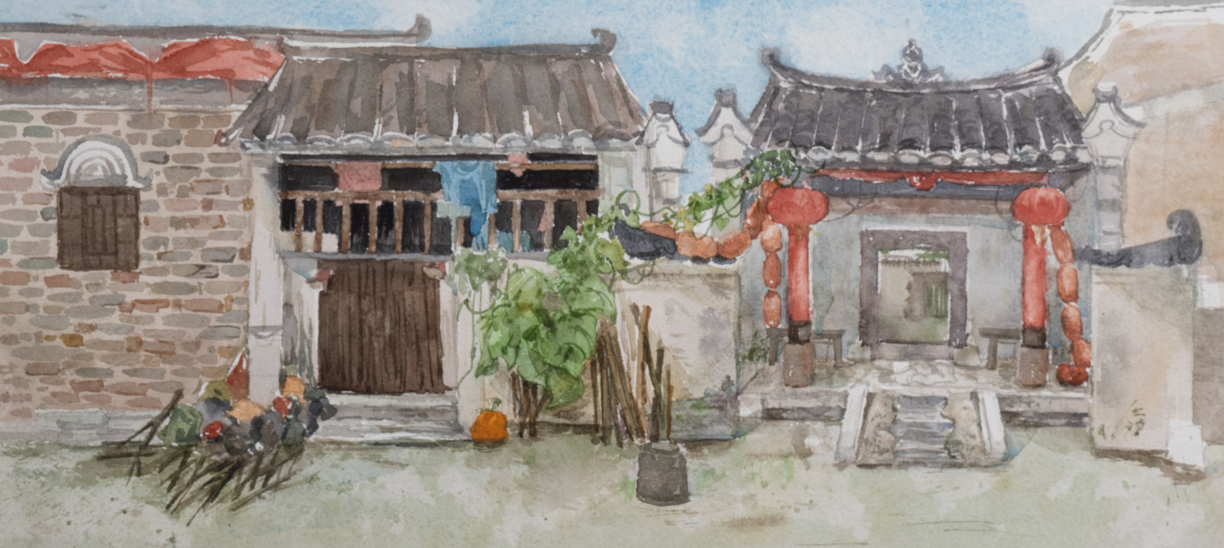 龙义敏教授作品《贺州古村印象之二》,40cmx70cm