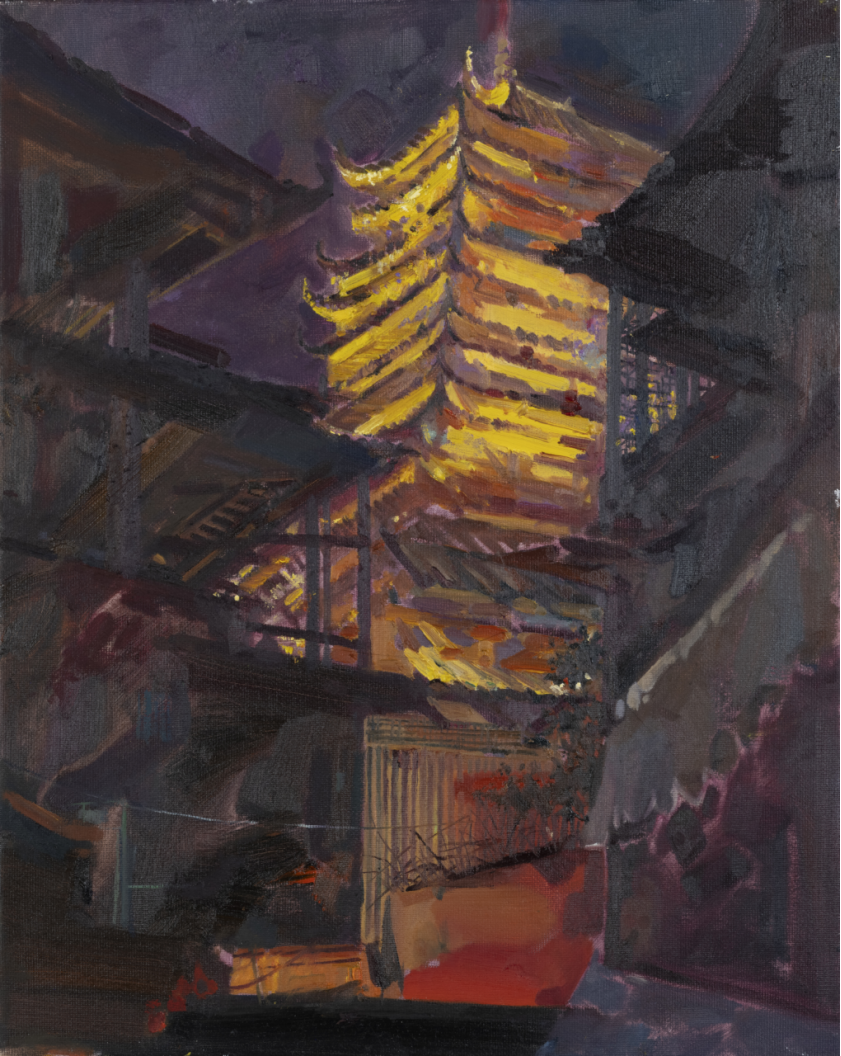 学生作品:绘画2404班,殷子涵回望鼓楼》,40cmX50cm