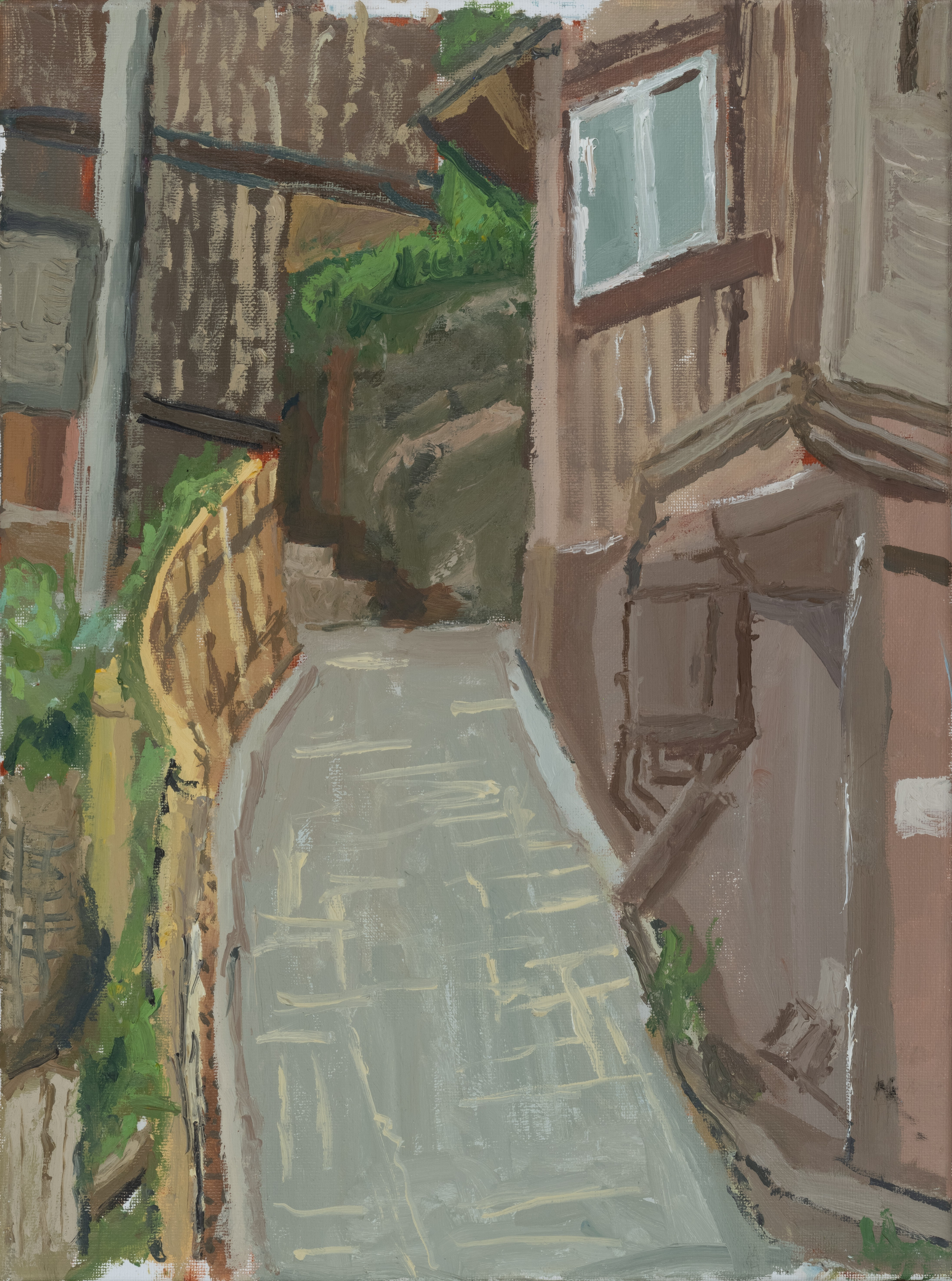 学生作品:美术学2401、02班,熊魏良巷隅闲光》,30cmX40cm