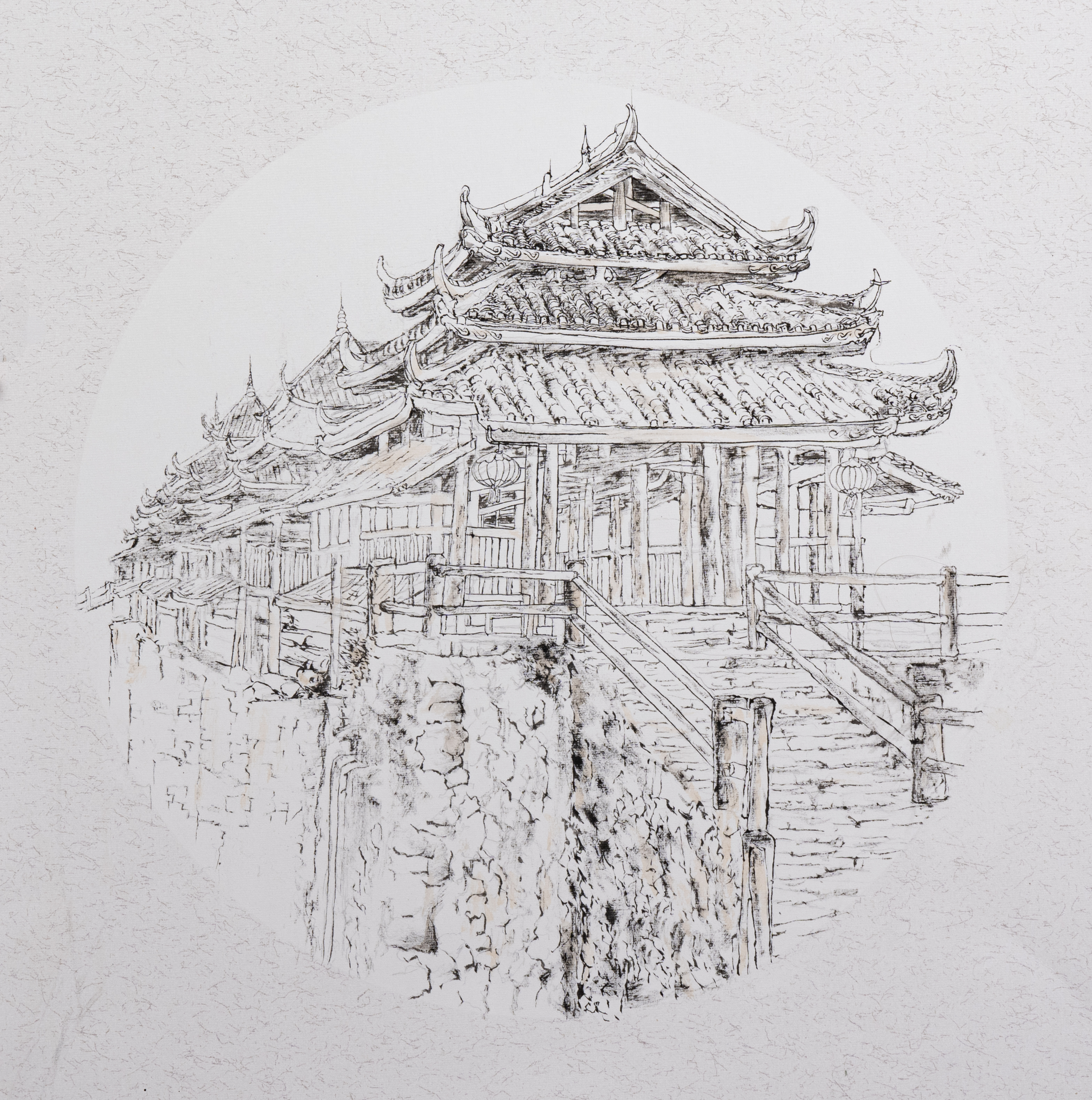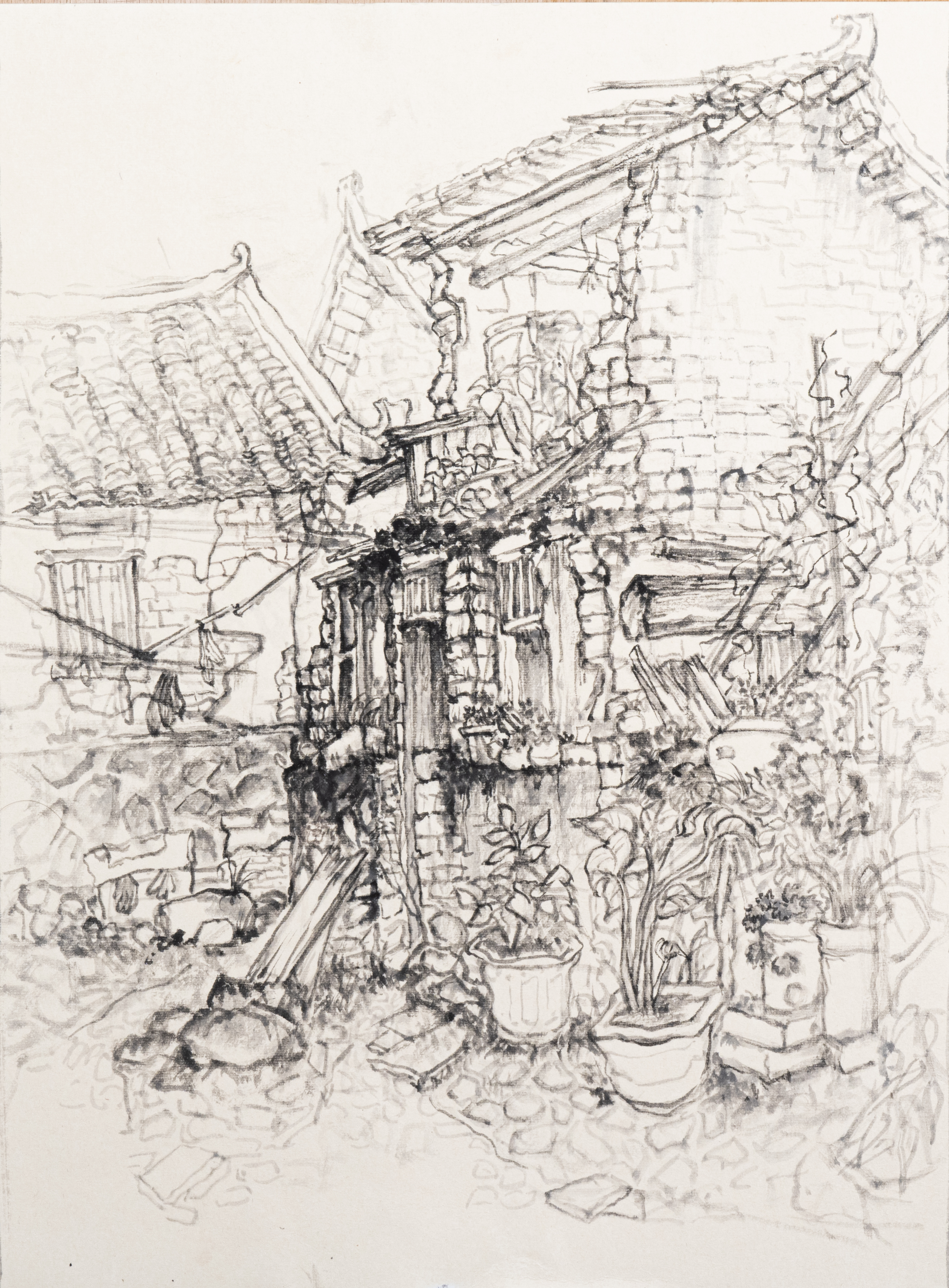 学生作品:美术学2302班,薛如冰檐影参差》,45cmX65cm