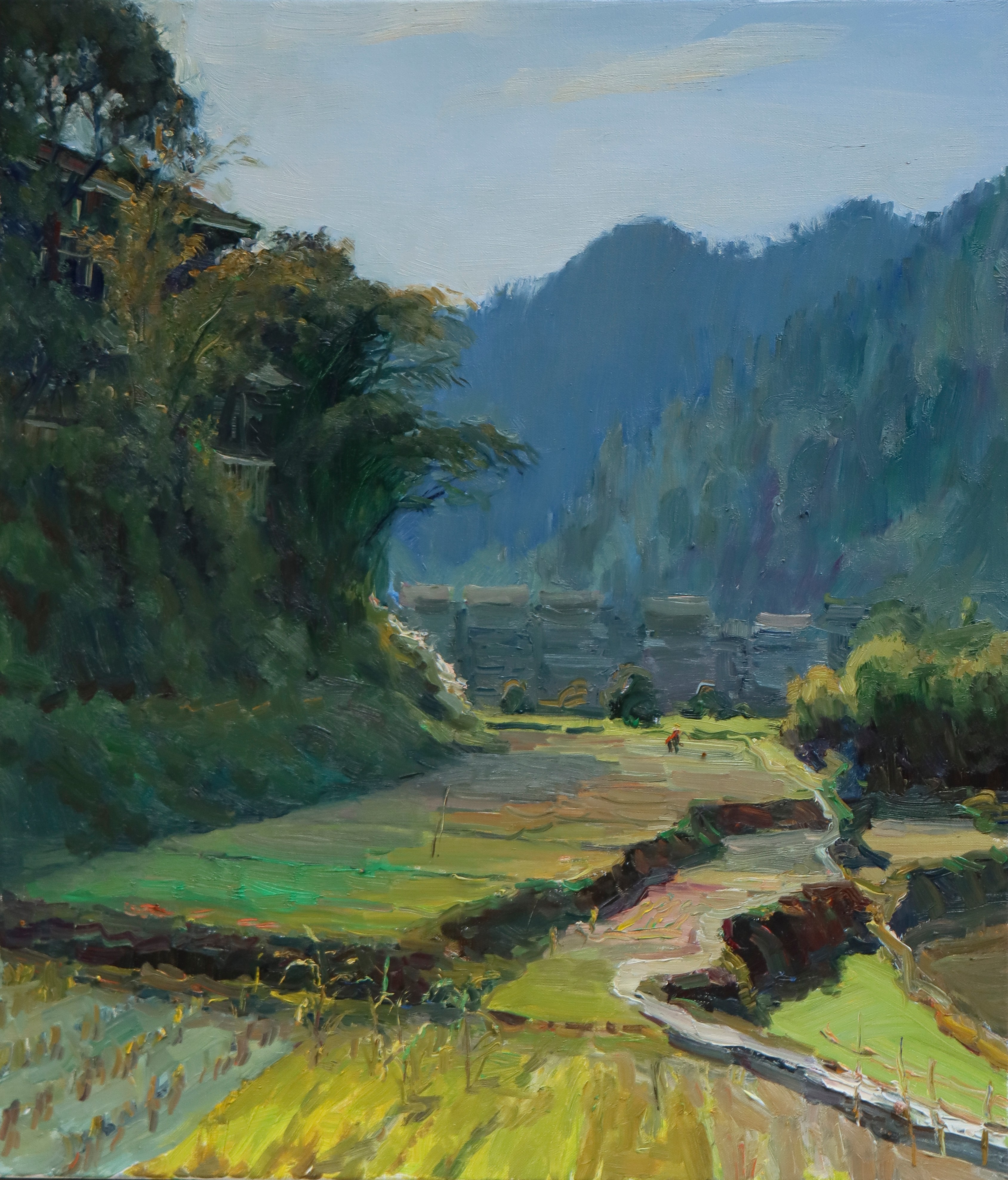 曲湘建教授作品《侗寨阳光》,80cmx60cm