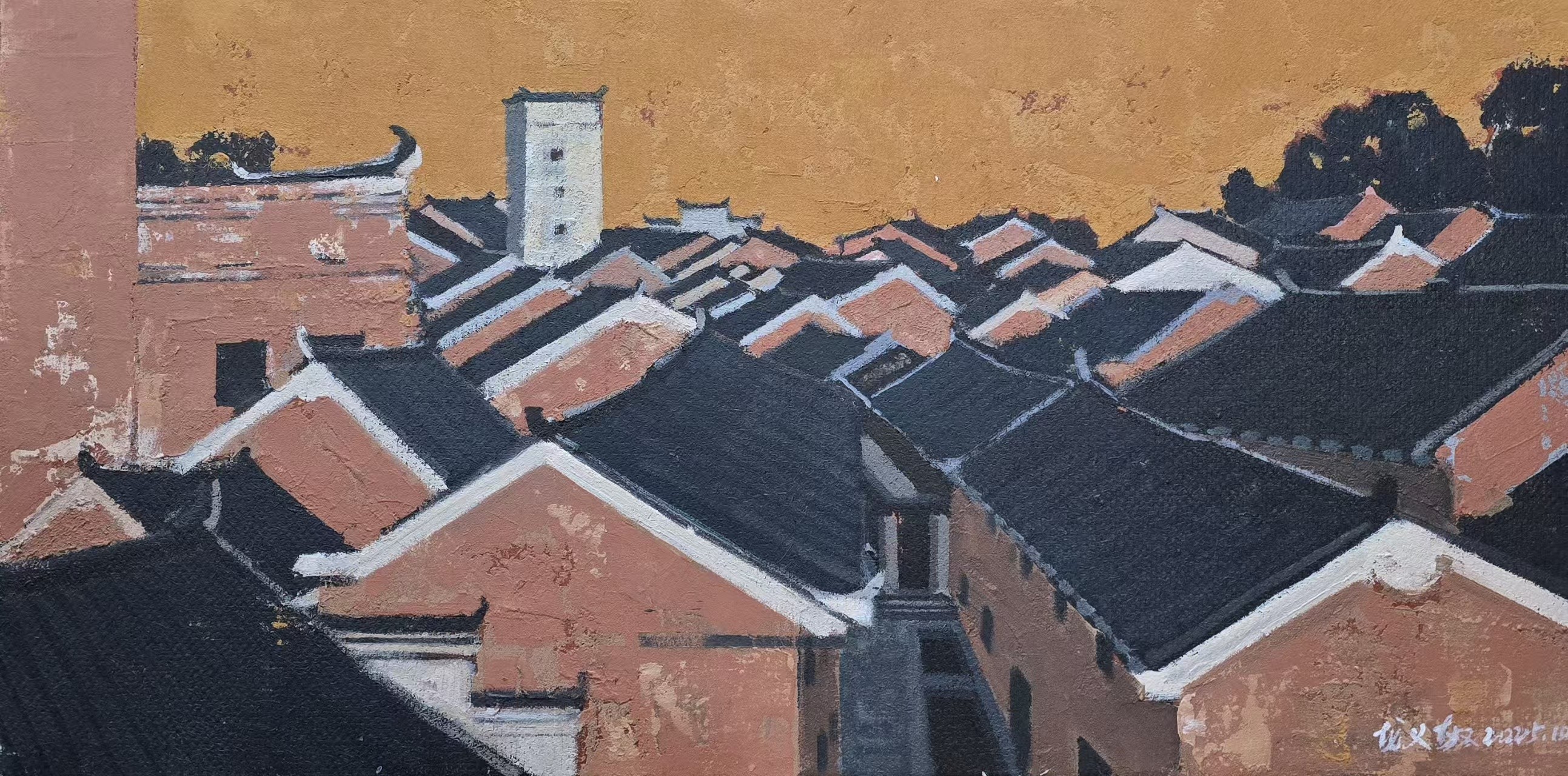 龙义敏教授作品《贺州古村印象之一》,40cmx70cm