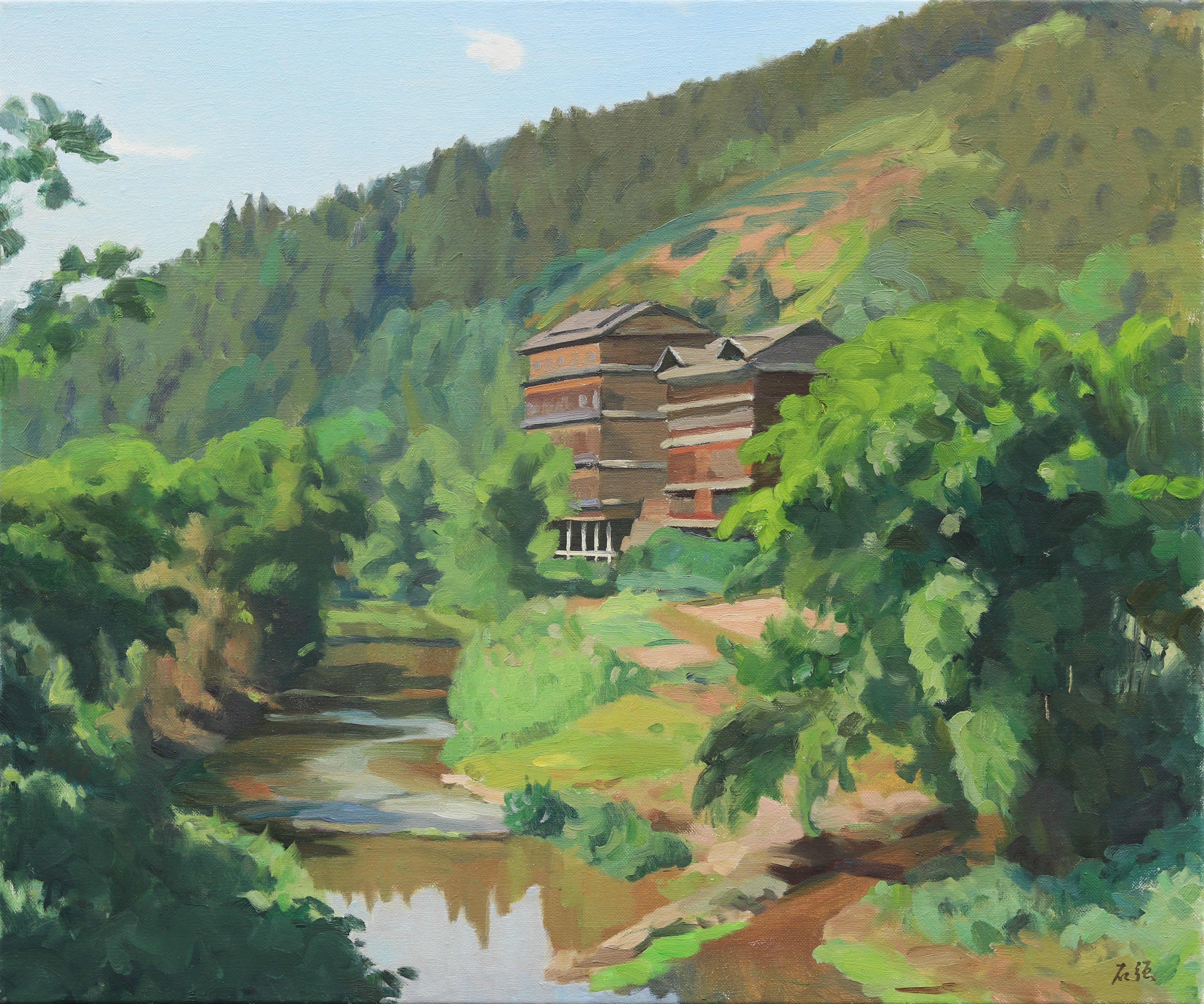 曲湘建教授作品《溪边人家》,80cmx60cm