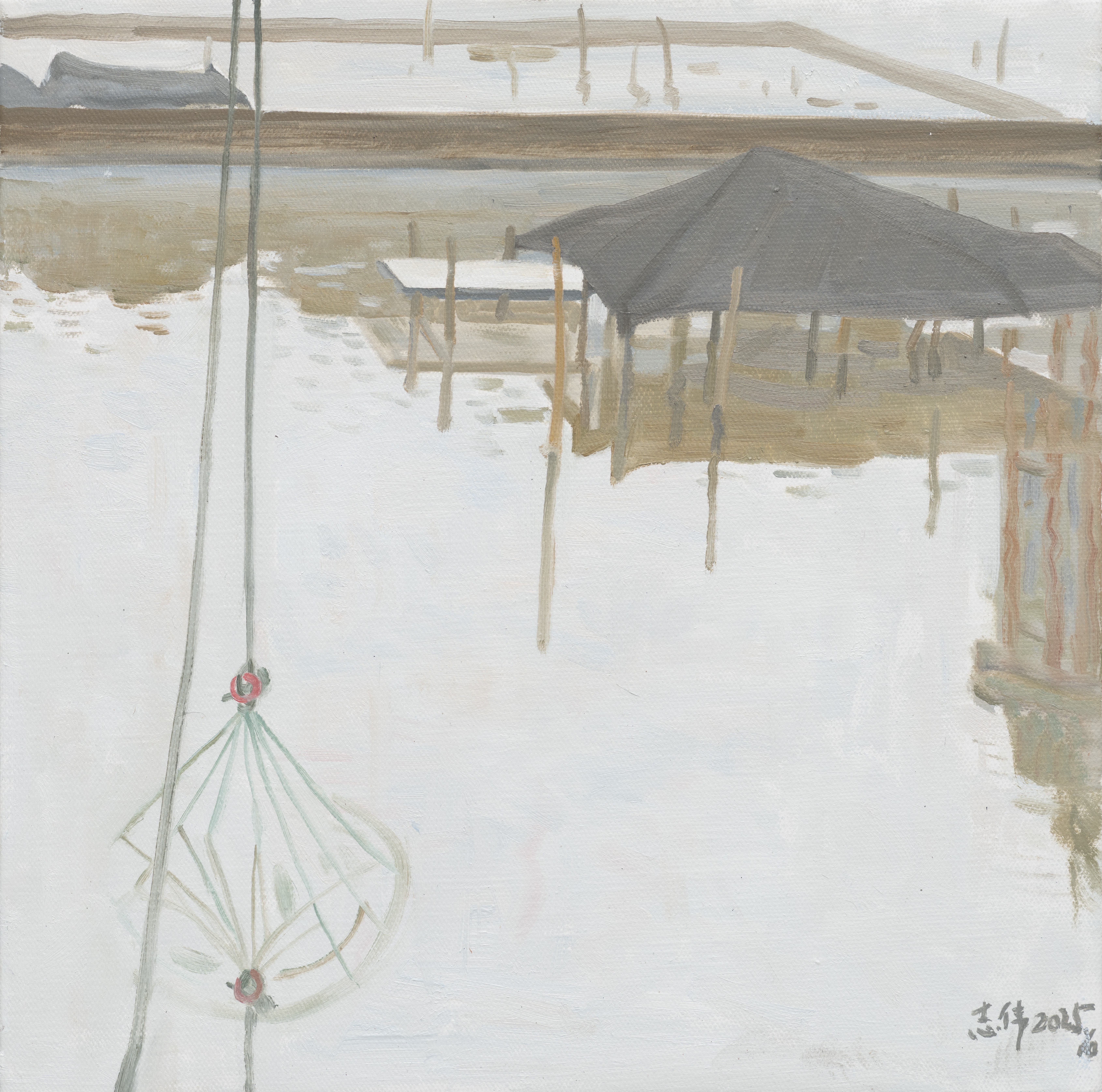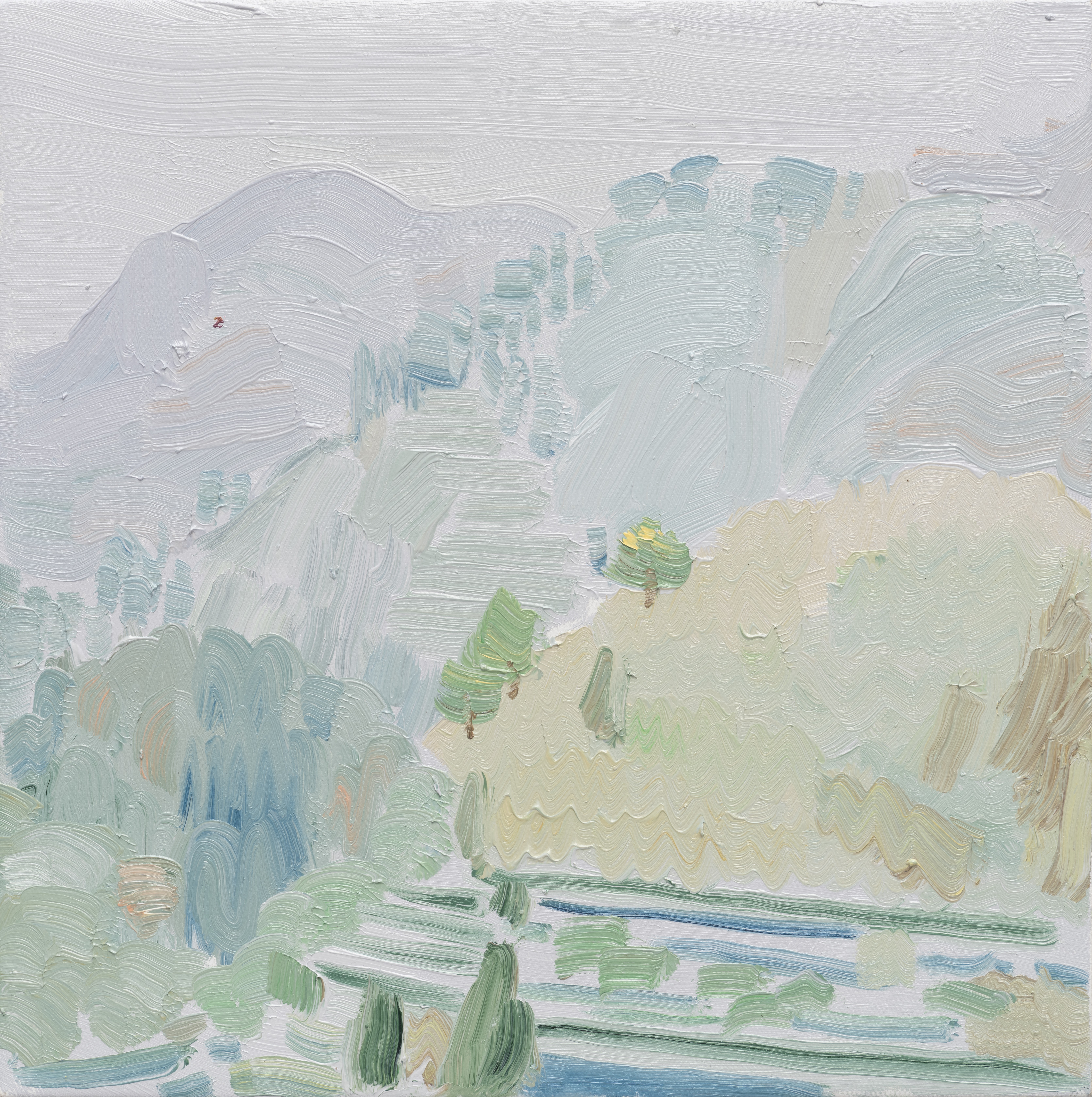 景思晔老师作品《雾里三江》,40cm×40cm