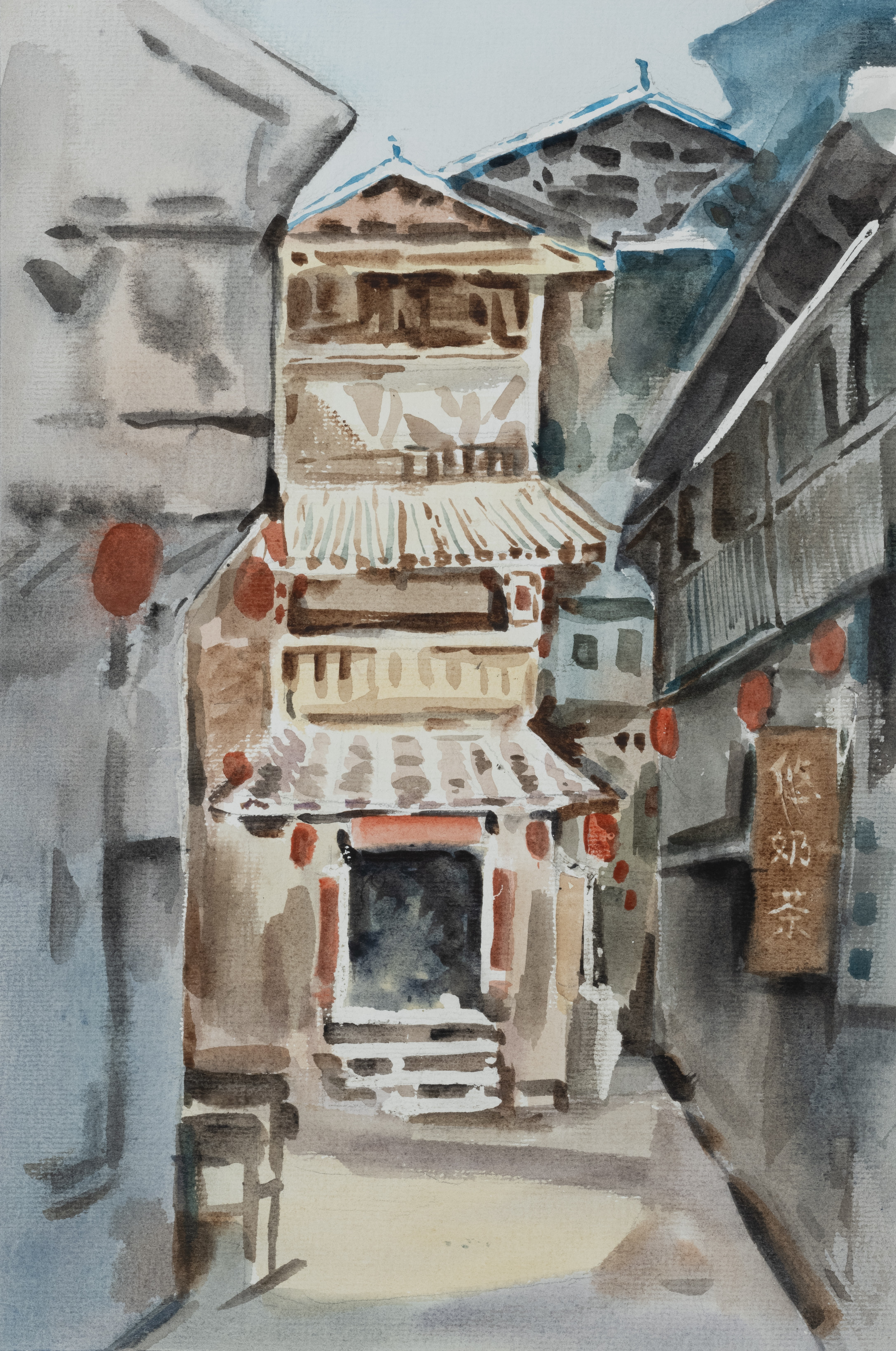 学生作品:美术学2305班,石涵玉小巷》,40cmX55cm