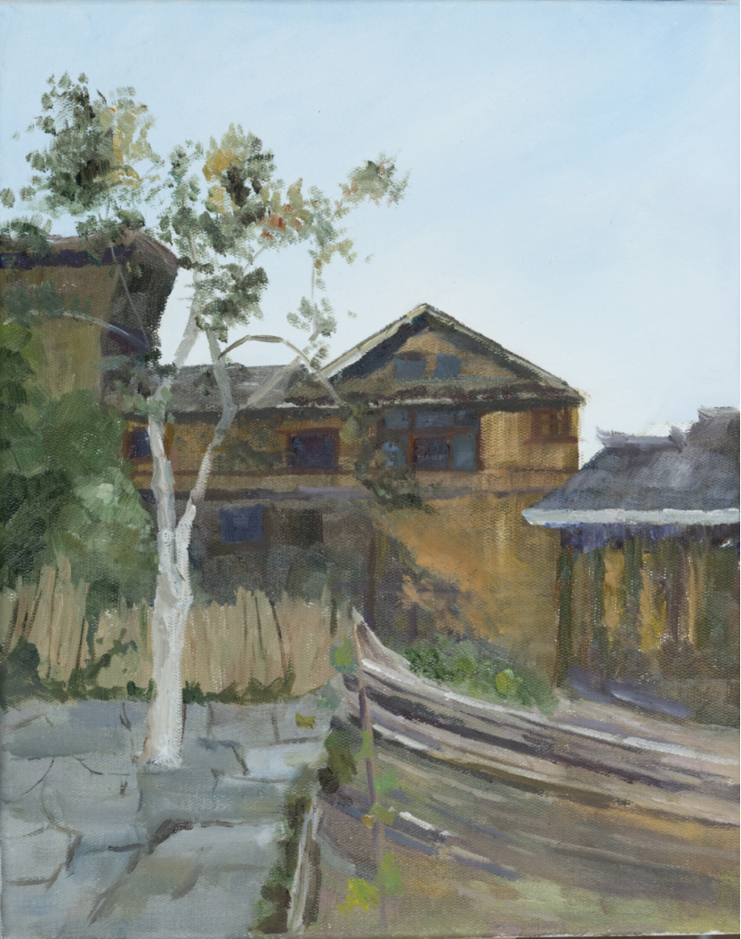 雒冲老师作品《村舍一隅》,30cm×50cm