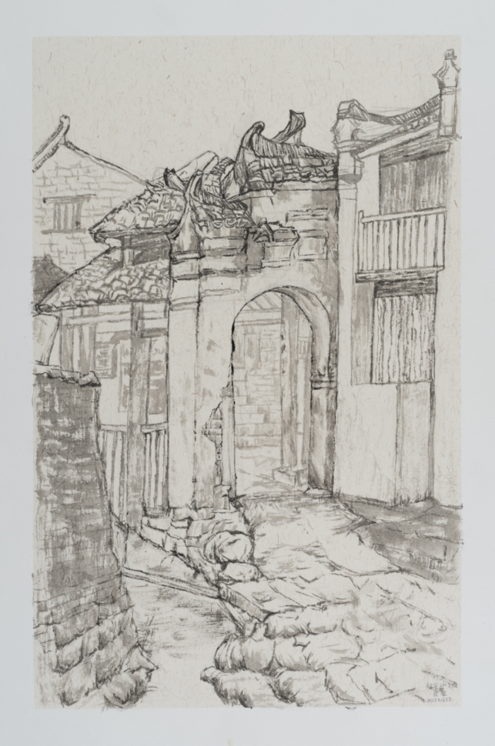 学生作品:美术学2303班,段敏残拱巷痕》,65cmX45cm
