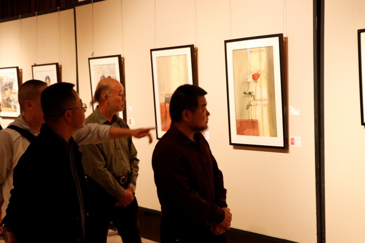 20211216日下午三点,美术学院2019级绘画专业水彩方向的课程作业汇报展在西校区图书馆一楼展厅正式开展。北海市美术家协会主席肖畅恒,北海市画院院长蔡群徽,美术学院特聘教授刘广斌,潘毅群教授,张玉祥教授,副校长陶立阳,美术学院副院长龚为应邀出席开幕仪式。