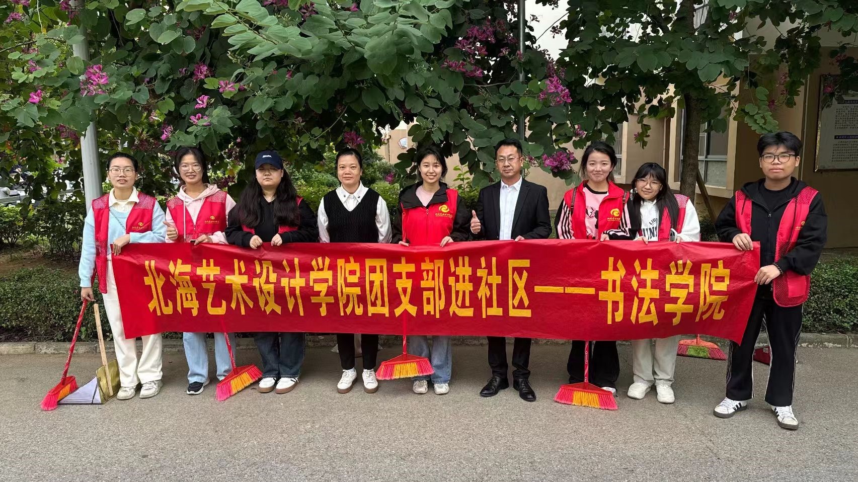 为全面推进志愿服务进社区,巩固教育实活动成果,引导大学生在志愿服务中绽放青春风采传递积极向上的青春正能量。2024年112011月22日,北海艺术设计学院书法学院团支部联合社区服务中心组织开展团支部社区志愿服务活动。