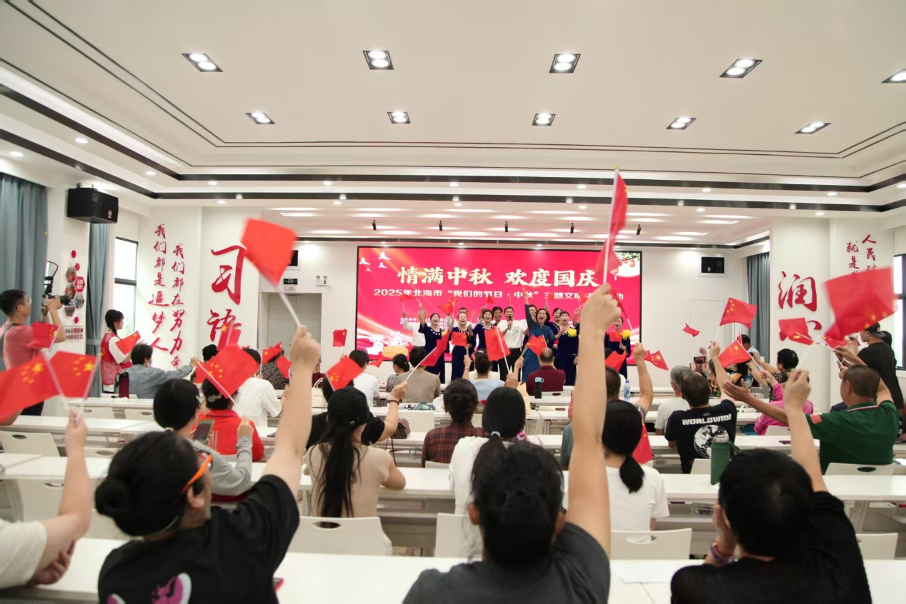 2025年北海市“我们的节日·中秋”主题文明实践活动9月29日上午在茶亭路社区热闹开启。本次活动以“情满中秋 欢度国庆”为主题,文学院志愿者全程主导服务,通过非遗展演、手工体验、趣味互动等丰富形式,为社区老年居民精心呈现了一场融合文化底蕴与节日温馨的双节盛宴。