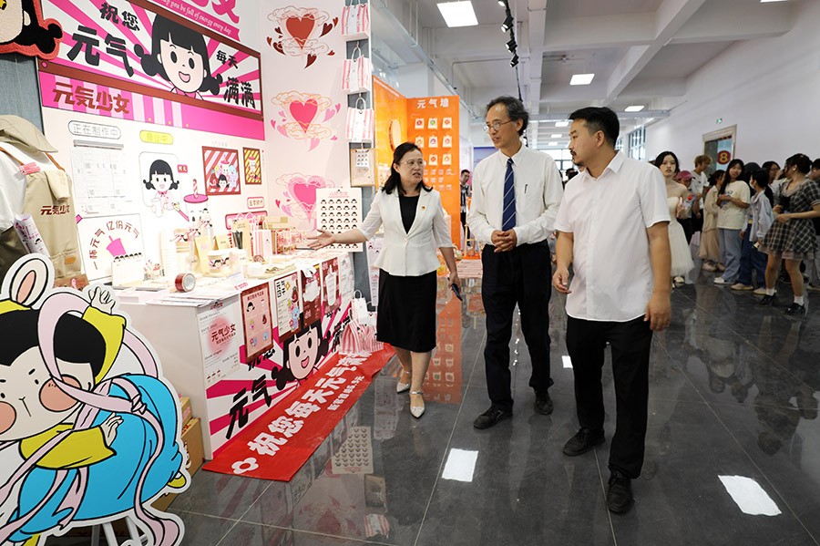 草长莺飞,鸟语花香,2023年5月6日上午,设计艺术学院2020级视觉传达设计专业品牌设计课程作品展在艺德楼8楼开展。出席本次展览开幕式的领导和嘉宾有学校党委书记张阳、校长卢新华,学院书记黄锦、院长李林平、副院长白建强、副院长李佩以及傅颖哲、范娅兰、侯林、龚东庆、王善民等教授,此外,北远见传媒集团、北海市广告协会会长刘利平,北海银滩景区公司总经理助理闫俊天,北海市任逍遥旅游文化有限公司执行董事张广,京海传媒副总经理刘龙文应邀出席。