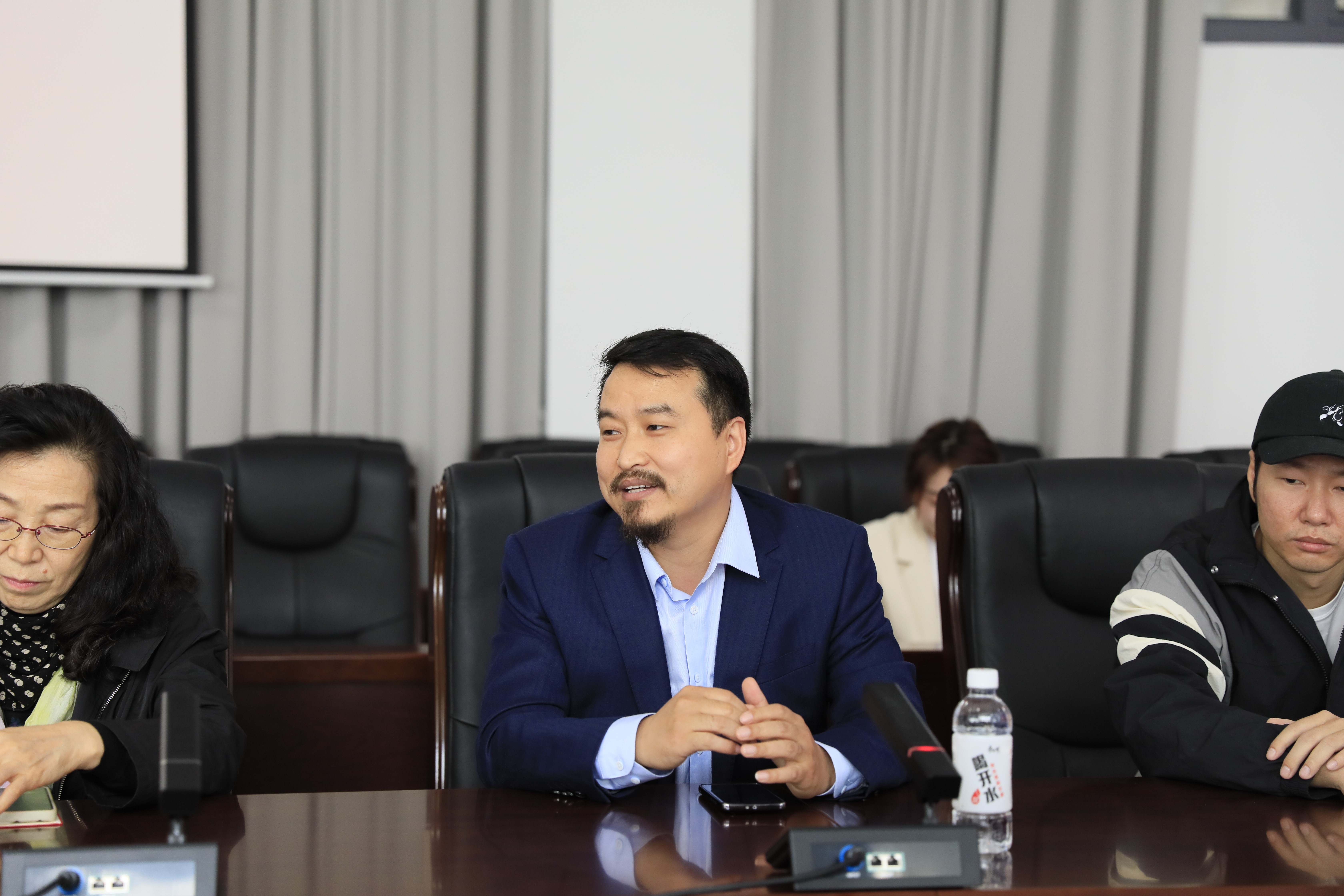 参观结束后,与会的嘉宾、教授和师生们开展了一场关于“古韵新颜——探寻文化设计之美”文创产品设计课程展的研讨会,研讨会由设计艺术学院副院长白建强主持。