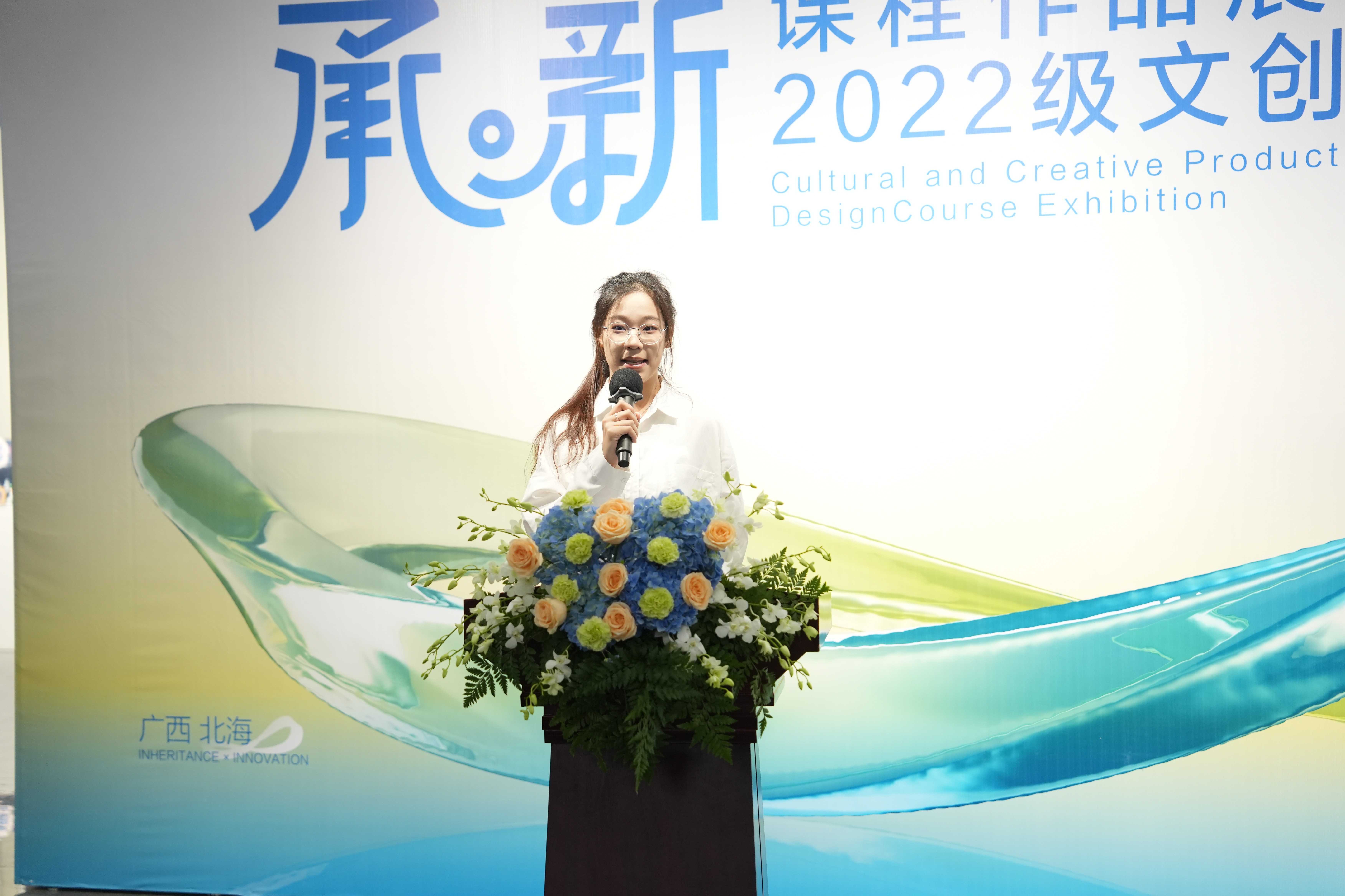 11月22日上午,设计艺术学院视觉传达设计专业 “承·新” 2022级文创产品设计课程作品展在学校南校区艺德楼8楼北侧展厅拉开帷幕出席开幕式的有:学校副校长陶立阳、桂林电子科技大学北海校区设计与创意学院院长葛俊杰、合浦汉代文化博物馆馆长廉世明、北海远见传媒集团副总经理王斌、北海远见传媒集团副总经理廖艺艺、北海银方健康产业有限公司副总经理崔玉丰、创新创业学院副院长陈渤水、设计艺术学院党总支书记黄锦、院长李林平、党总支副书记林秀琪、副院长白建强、李佩、邓渠成、吴慧霞,以及马振庆、郭强、彭馨弘、傅颖哲等教授及任课教师和2022级学生。开幕式由视觉传达设计专业教师王昳凡主持。