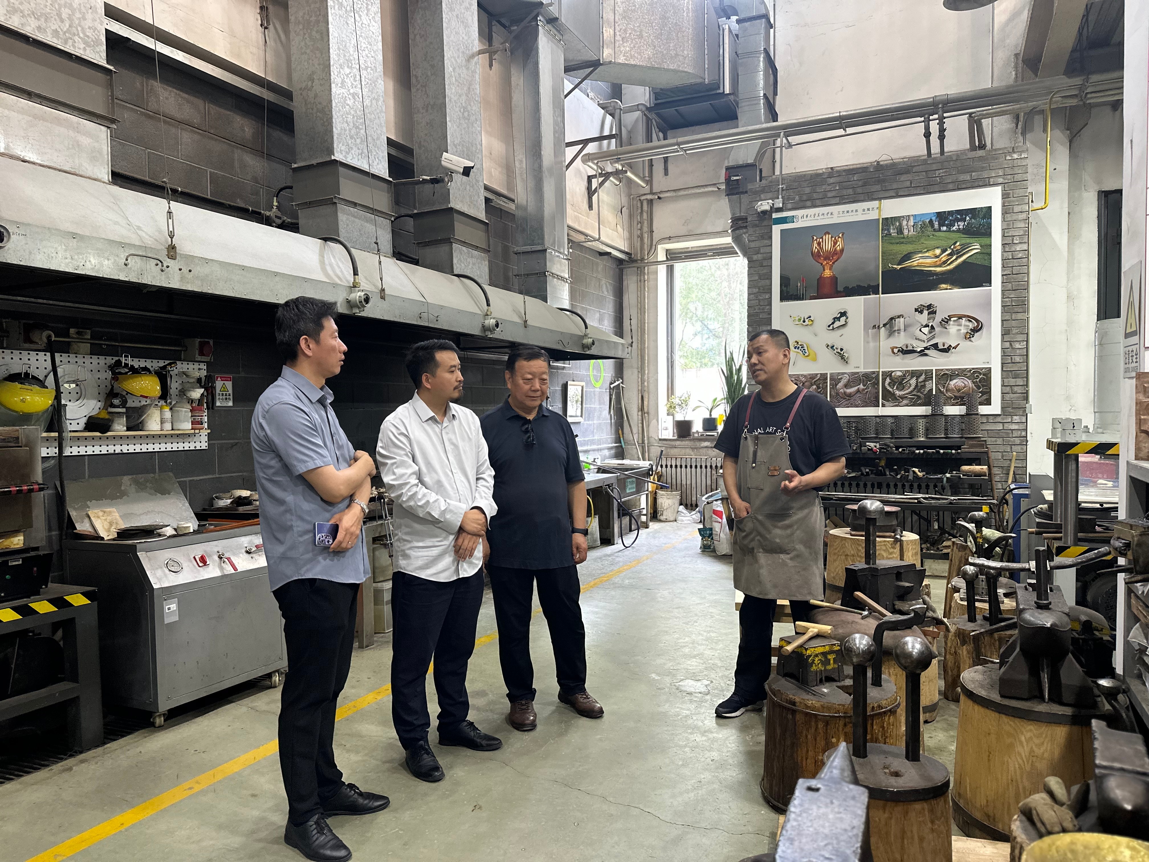调研组首站赴清华大学美术学院实地考察。在张夫也教授的带领下,调研组深入参观了视觉传达设计实验室、首饰工艺实验室、版画工艺实验室、印染工艺实验室、纸张艺术实验室、陶瓷艺术与设计实验室、金属工艺实验室等7个实验室。其先进的设备、科学的布局和高效的运行模式,为学院智能设计实验室建设及应用型艺术设计人才培养提供了重要参考借鉴。