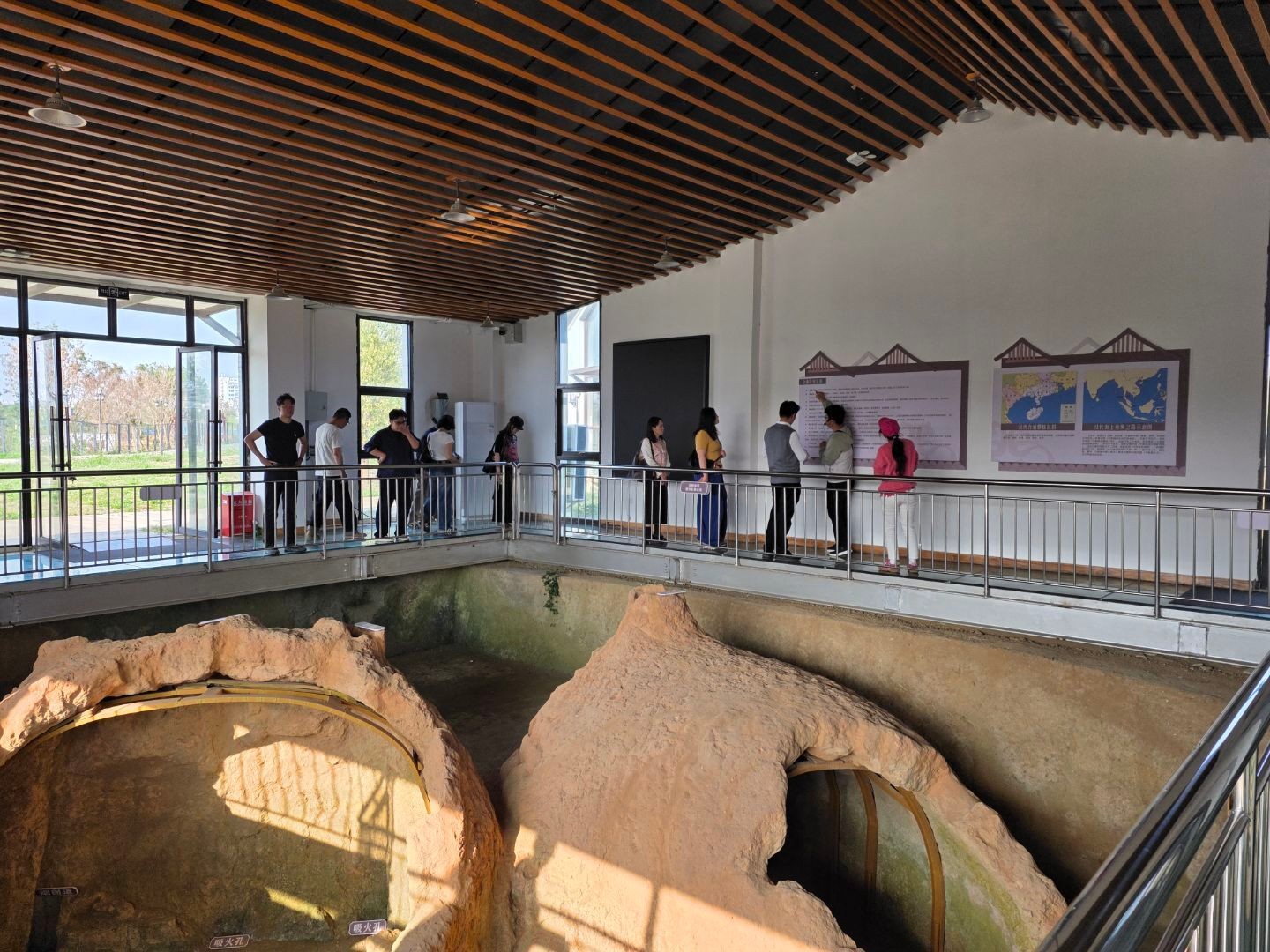 调研中期,团队返回合浦县城,先后探访海角亭、惠爱桥及草鞋村遗址三大文化地标。始建于北宋景德年间的海角亭,为纪念东汉合浦太守孟尝“珠还合浦”的德政而建,亭内碑刻林立、古意盎然,诉说着千年文脉的薪火相传;惠爱桥作为第七批全国重点文物保护单位,彰显了地方传统木构桥梁的营造智慧;草鞋村遗址入选国家文物局《大遗址保护利用“十四五”专项规划》“十四五”时期大遗址”名单,出土的大量汉代文物,为研究海丝港口贸易提供了珍贵实物资料,教师们在实地探访中,深刻体悟合浦作为海丝明珠的深厚历史底蕴与文化厚度。