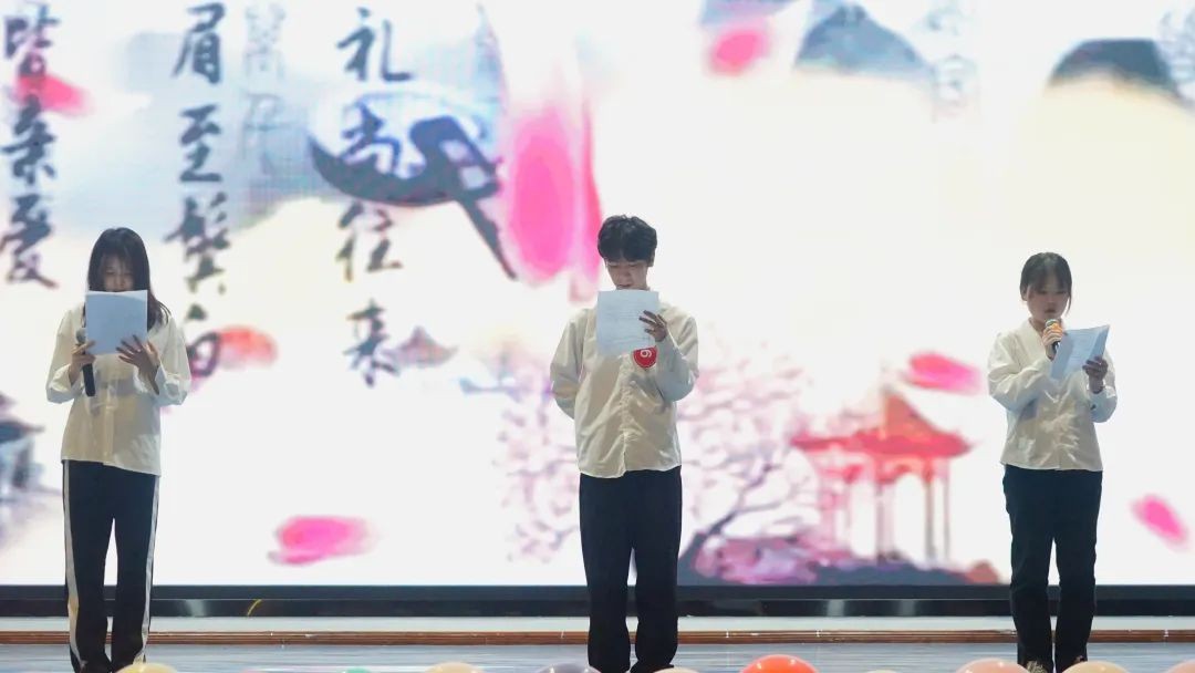 精彩的开场舞表演后,七支参赛队伍此前以比赛的方式齐聚在一个舞台上,向全校师生展示风采,共同走向“礼”之华章。